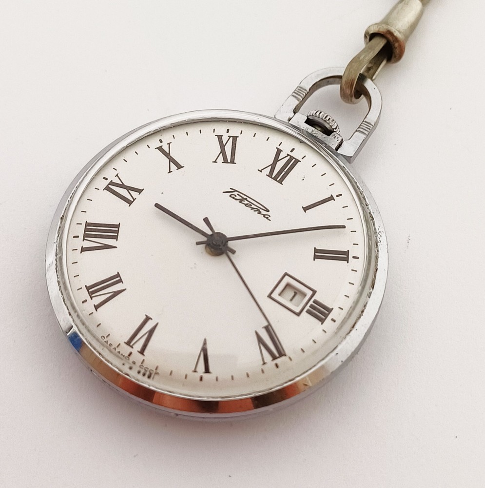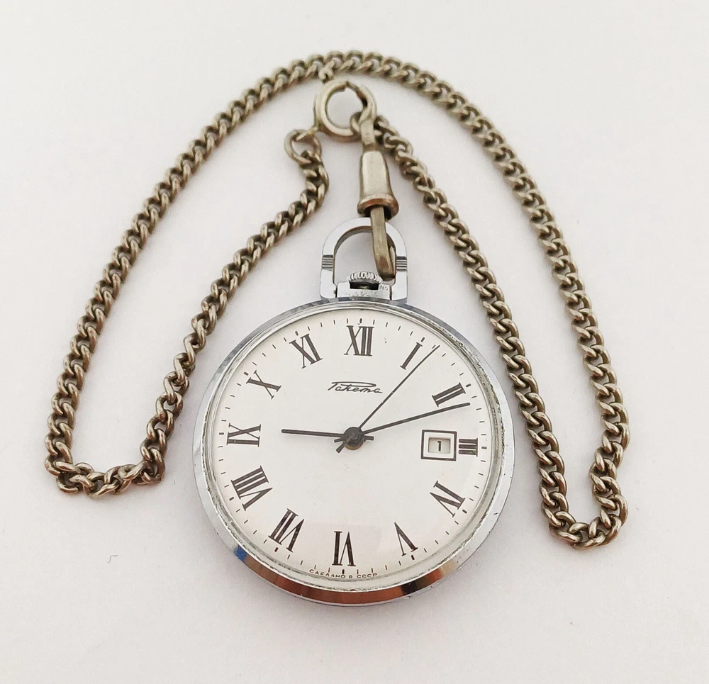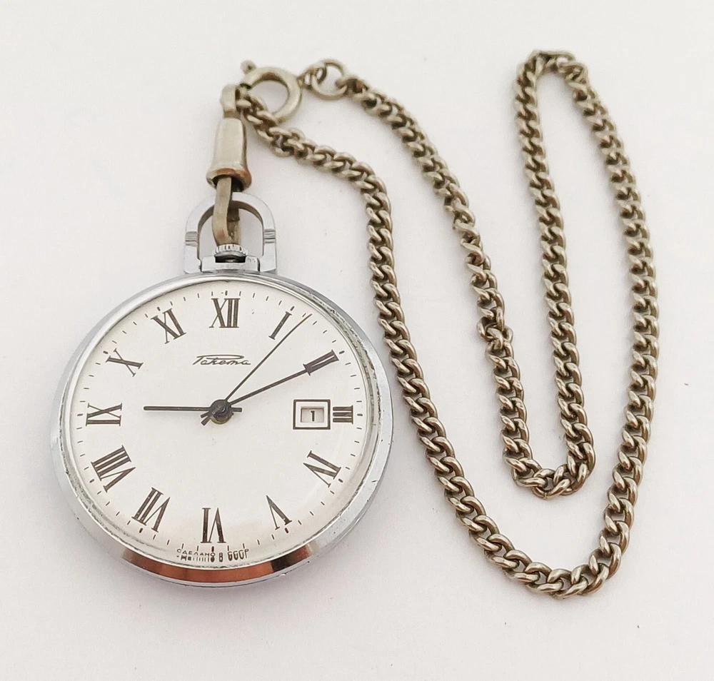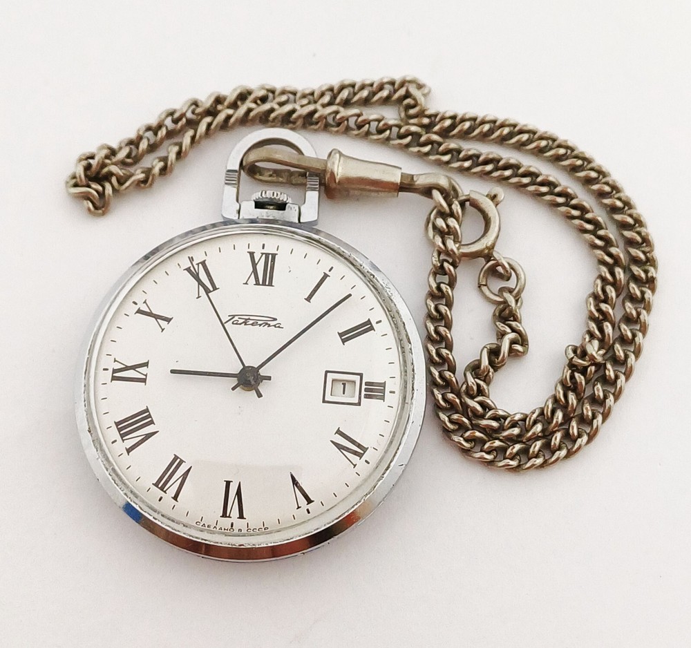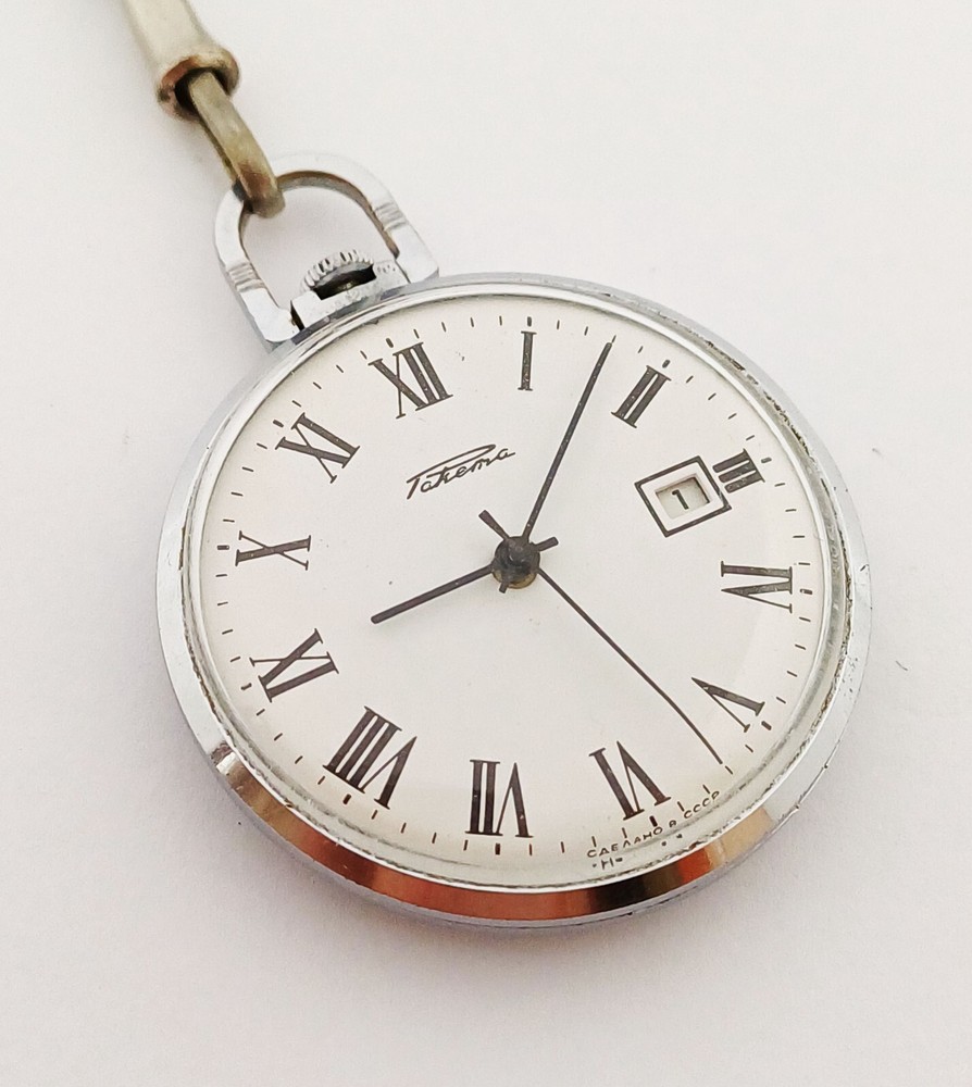 Rare Raketa Original Vintage Soviet Ussr Russian mechanical pocket watch "Raketa" is indeed a well-known Soviet watch brand. They produced a wide range of watches over the years, and some of their vintage timepieces are highly sought after by collectors and enthusiasts. The history of Raketa (which means "rocket" in Russian) dates back to 1961, when the Petrodvorets Watch Factory (formerly known as the First Moscow Watch Factory) was tasked with producing watches for the Soviet space program. The brand quickly gained popularity not only in the Soviet Union but also in other countries due to its reliability and affordability. Today, vintage Raketa watches are sought after by collectors worldwide. Case size (without crown) - 40 mm Dial size - 36 mm Case thickness - 12 mm 100% original mechanical watch The watch has been serviced by a watchmaker and is in excellent working condition. For vintage watches, a movement error of approximately 5 minutes per day is allowed. This difference is due to the fact that in a mechanically wound watch, the parts are subject to wear and tear, which affects the accuracy of the movement. Owners of vintage watches usually accept such an error, as the historical and aesthetic value of the watch is more important to them than absolute accuracy. Vintage Soviet watches are highly sought after by collectors and enthusiasts due to their historical significance and unique designs. Collecting vintage Soviet watches can be a fascinating hobby, allowing you to own a piece of history while appreciating the craftsmanship and design of these timepieces. Shipping Items are shipped worldwide by airmail with a tracking number. Delivery period US, Europe - 10-15 business days Australia, New Zealand - 20-30 business days Other countries - 10-20 business days