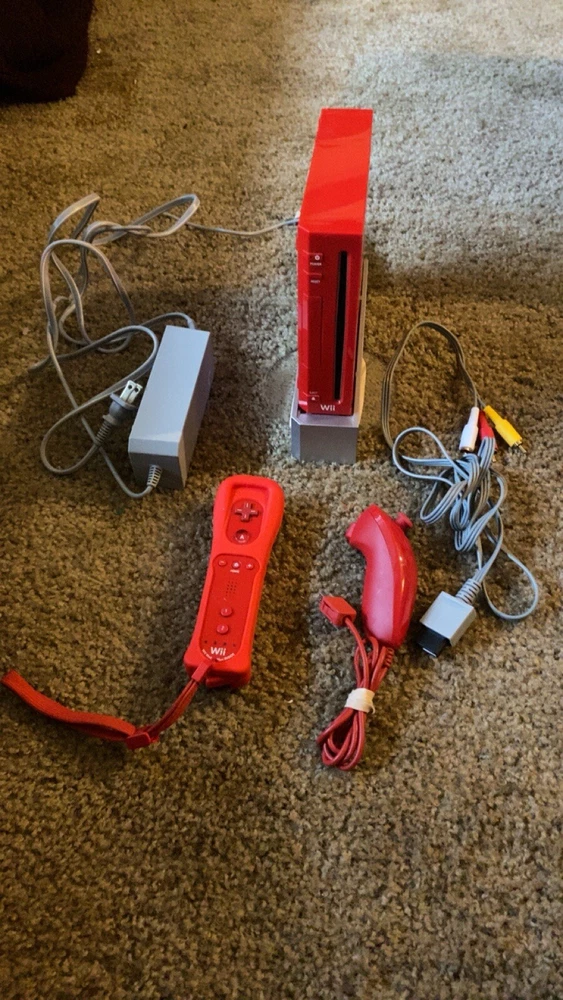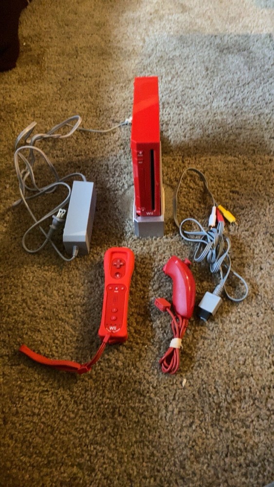 This console has been tested and working however it does not include the sensor bar. Everything in the photo is what is included Serial number has been photographed for console verification Good working condition rare red console This rare, limited edition Nintendo Wii console comes in a striking red color and includes all the necessary accessories. The console has been thoroughly tested and is in perfect working order. It is designed for use with NTSC-U/C (US/Canada) systems and is compatible with the Nintendo Wii platform. The console is a must-have for any serious collector or avid gamer. It comes complete with all the necessary cords and remote controls, which have also been tested and are in perfect working order. The console is a true gem, and you won't find another like it anywhere else.