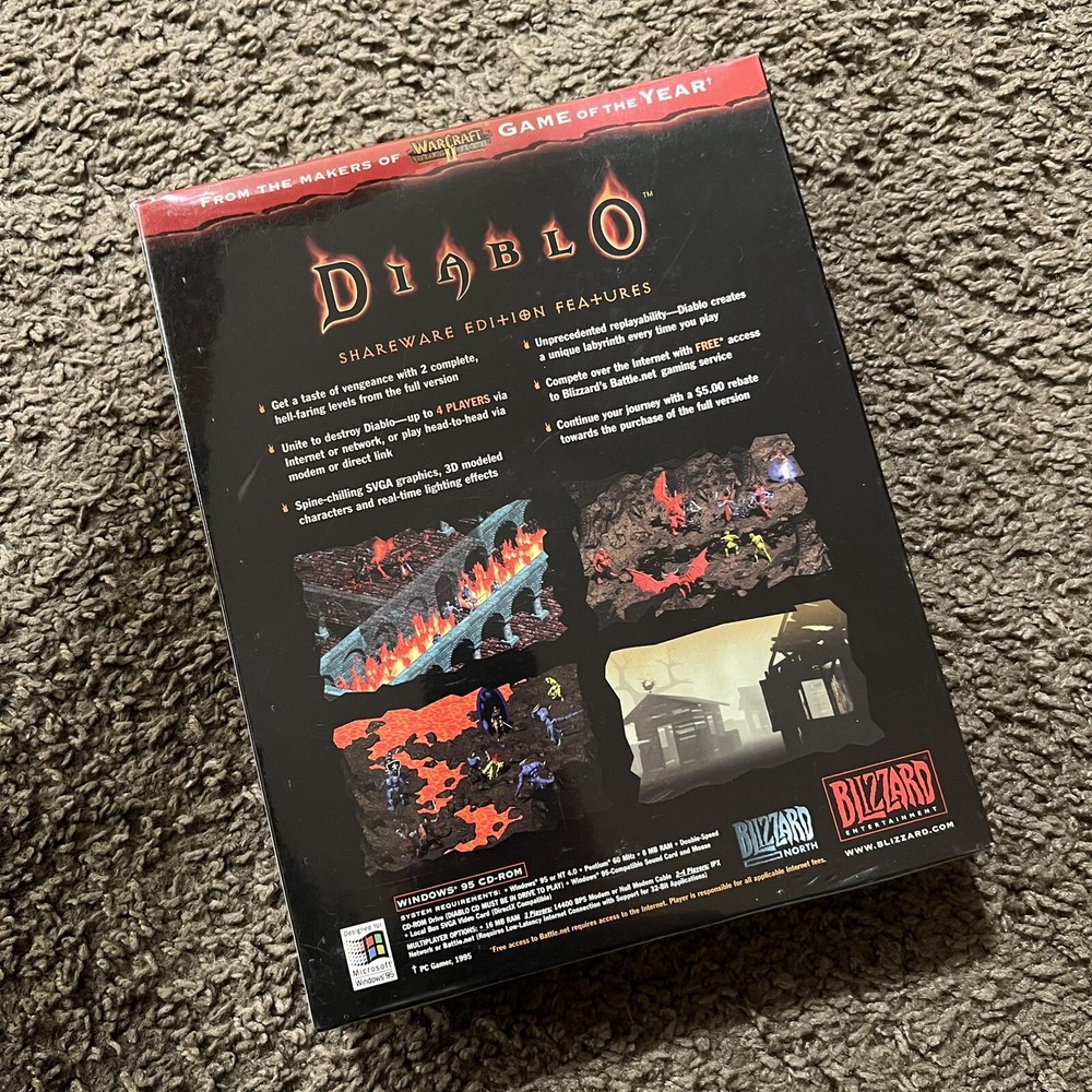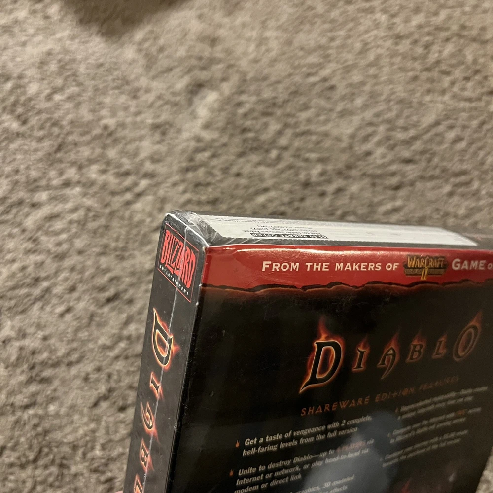 SUPER RARE BRAND NEW SEALED Get it now while you can, very rare version of the game in sealed form! Product is in excellent condition considering it’s sealed age.l! Please use listing photos for further condition. Seal in very good, box and it’s corners are very straight, box as seen in photos has a slight dent on the right corner (seal is not broken) and above the I in Diablo there is 2 small punctures to the box artwork. Box and seal are clean and display amazing! This is a rare and highly sought-after shareware version of Diablo, created by Blizzard Entertainment in 1997. It includes elements of strategy, role-playing, casino, and card games, making it a unique and exciting addition to any gaming collection. The game is rated M for mature audiences and comes in a sealed package, ensuring its authenticity and quality. The unit type is for PC platforms, and the region code is for NTSC-U/C (US/Canada). The game is published by Blizzard and features stunning graphics and engaging gameplay. This item is a true gem for any video game collector or fan of classic gaming.