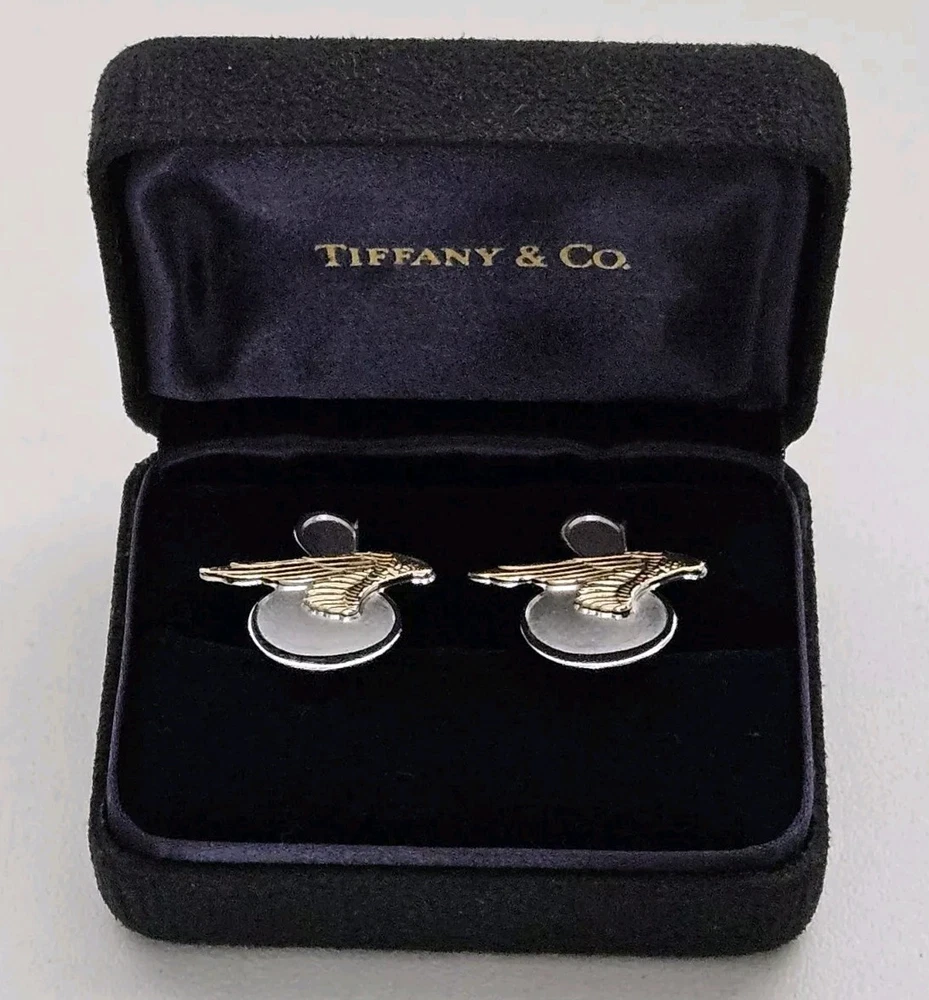 Up for sale is a Rare Pair of Tiffany & Co. Sikorsky Aircraft/Lockheed Martin Executive Sterling Silver and 14K Yellow Gold Cufflinks. Measures approximately 1" Wide X 7/8" High. Total weight is 11.4 Grams. Cufflinks come in original Tiffany & Co. gift box. Cufflinks are in excellent condition. Please feel free to ask questions. Thank you. From a smoke and pet free environment E-345