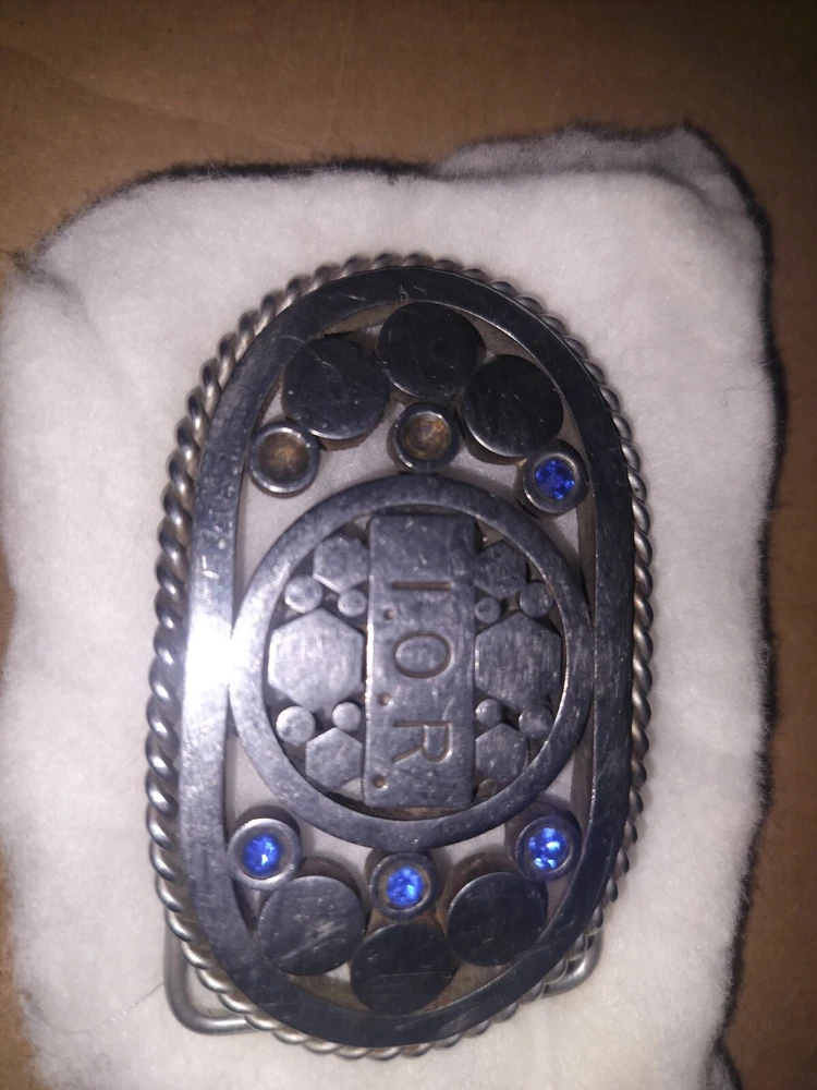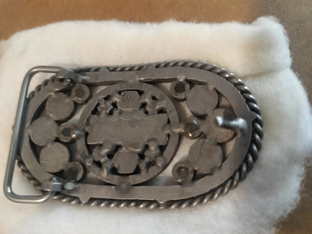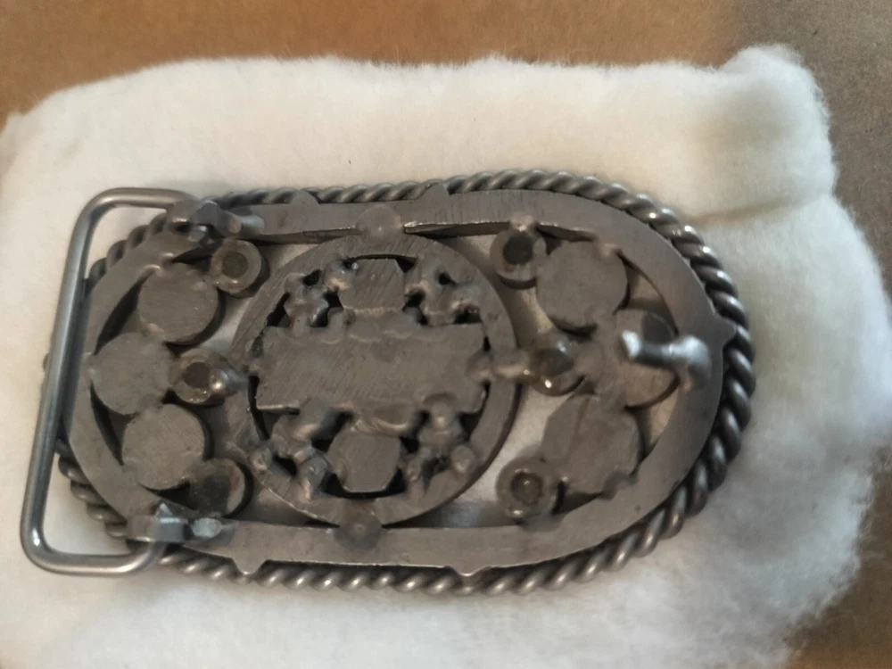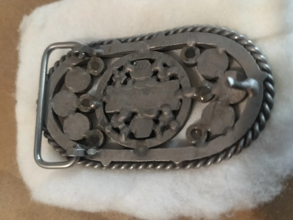 Add a unique touch to your wardrobe with this rare vintage brass belt buckle from I.O.R in the 1960s. The intricate design and silver color give it a classic Western look that is perfect for any adult unisex outfit. The material is unknown, adding to the mystery and allure of this piece. This belt buckle is a great addition to any vintage accessories collection and is sure to make a statement. It is perfect for those who love cowboy and Western themes and want to add a touch of authenticity to their outfits. Don't miss out on the chance to own this unique piece of history.