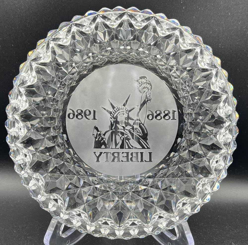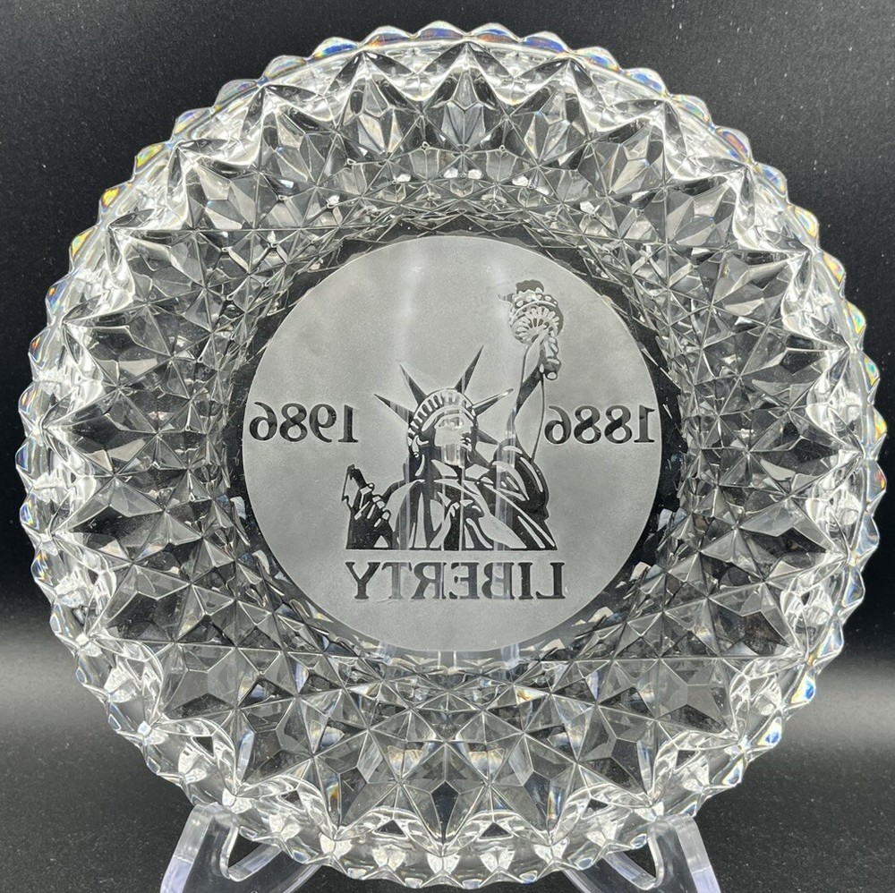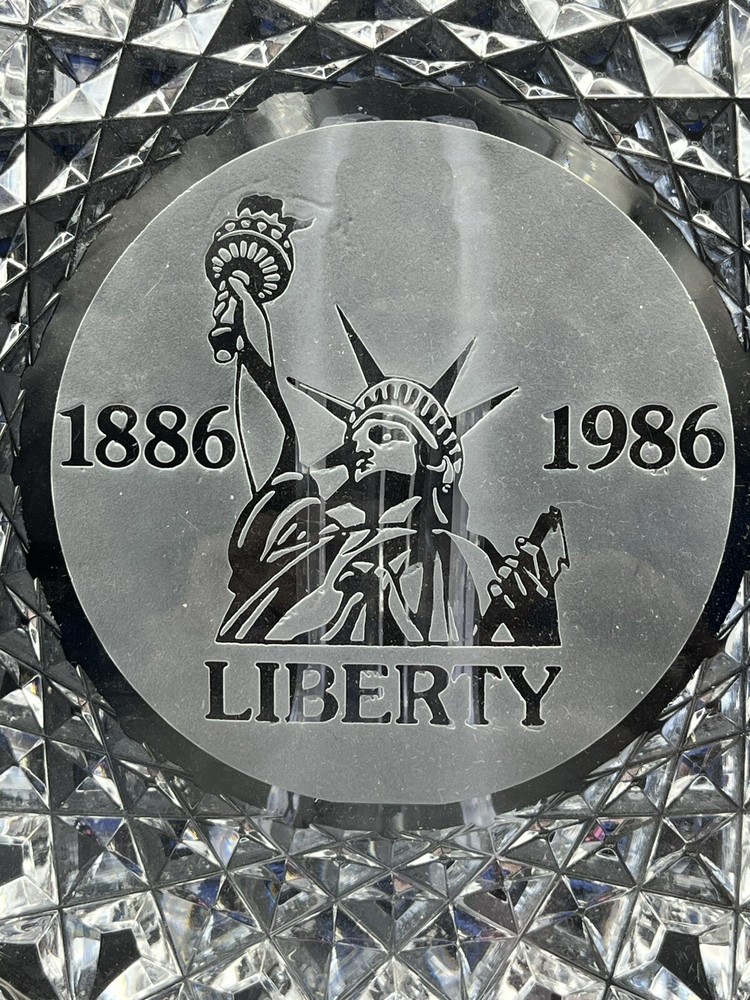 This is a rare Waterford Crystal 1986 Centennial Statue of Liberty plate trinket dish. It originates from Ireland and features a round shape with a clear color and glossy finish. This vintage item was manufactured in 1986 and is a commemorative piece celebrating the Statue of Liberty. Made of crystal, it is decorated with an American theme in a Statue of Liberty style, making it a decorative and collectible piece for enthusiasts of historical and artistic items.