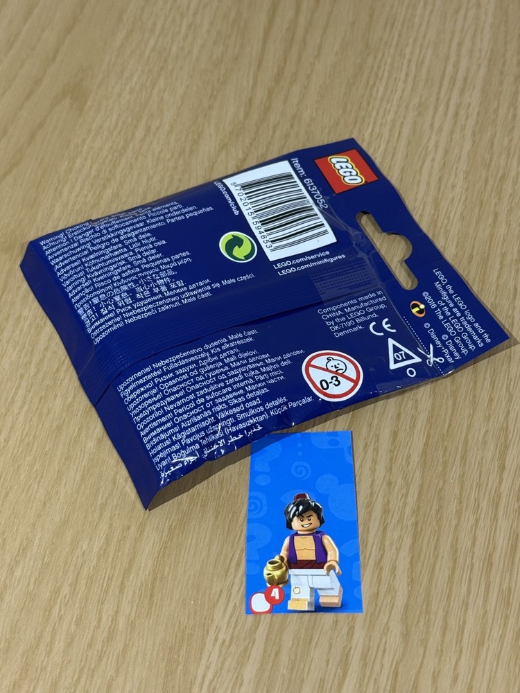MPN:71012Retired:YesMaterial:PlasticLEGO Subtheme:Series 1Packaging:Foil PackLEGO Set Name:Minifigures Series 1LEGO Character:AladdinNumber of Pieces:1Release Year:2016Country of Origin:DenmarkLEGO Theme:DisneyBrand:LEGOType:Minifigure
