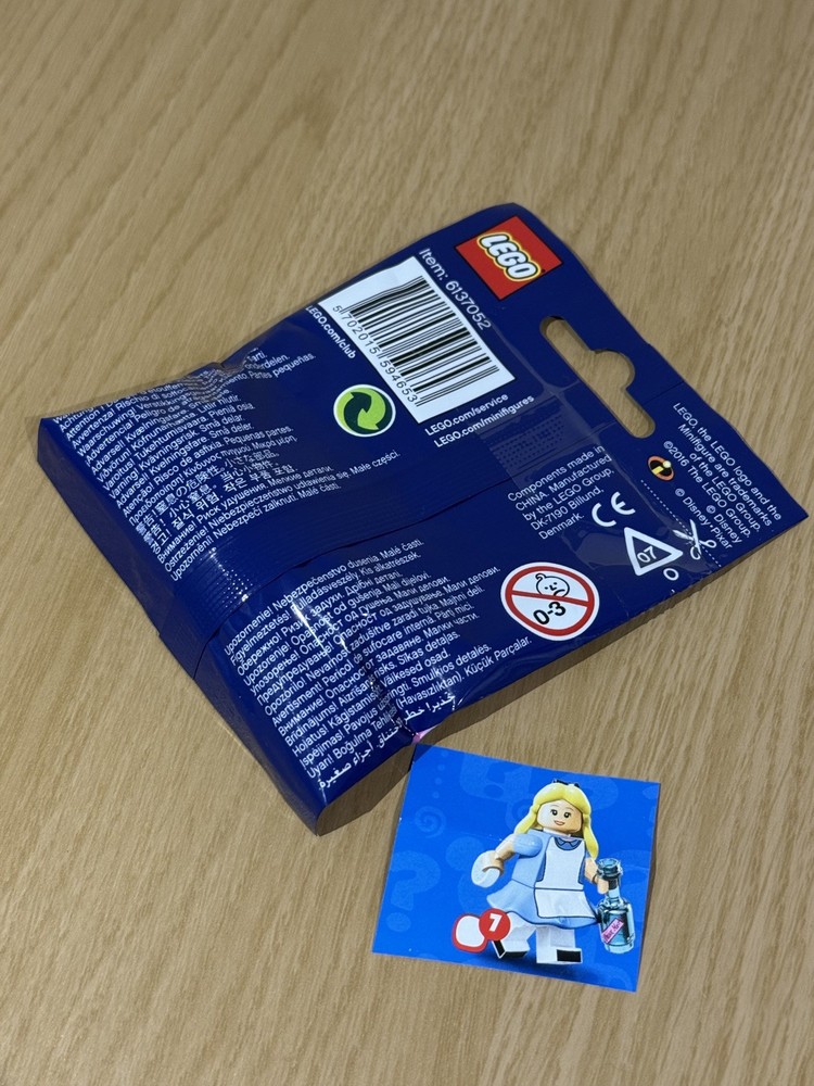 LEGO Theme:DisneyRetired:YesLEGO Subtheme:Series 1Packaging:Foil PackLEGO Character:AliceNumber of Pieces:1Type:MinifigureLEGO Set Name:Minifigures Series 1Material:PlasticBrand:LEGOMPN:71012Release Year:2016Country of Origin:Denmark