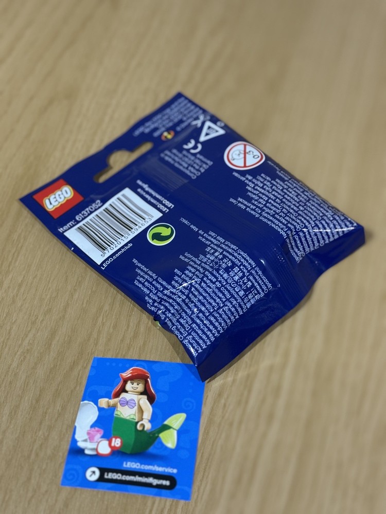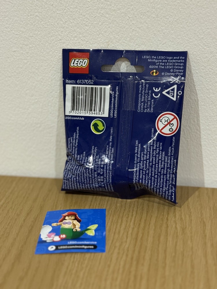 Retired:YesLEGO Character:ArielMaterial:PlasticLEGO Set Name:Minifigures Series 1Country of Origin:DenmarkNumber of Pieces:1Release Year:2016LEGO Theme:DisneyMPN:71012Packaging:Foil PackLEGO Subtheme:Series 1Type:MinifigureBrand:LEGO