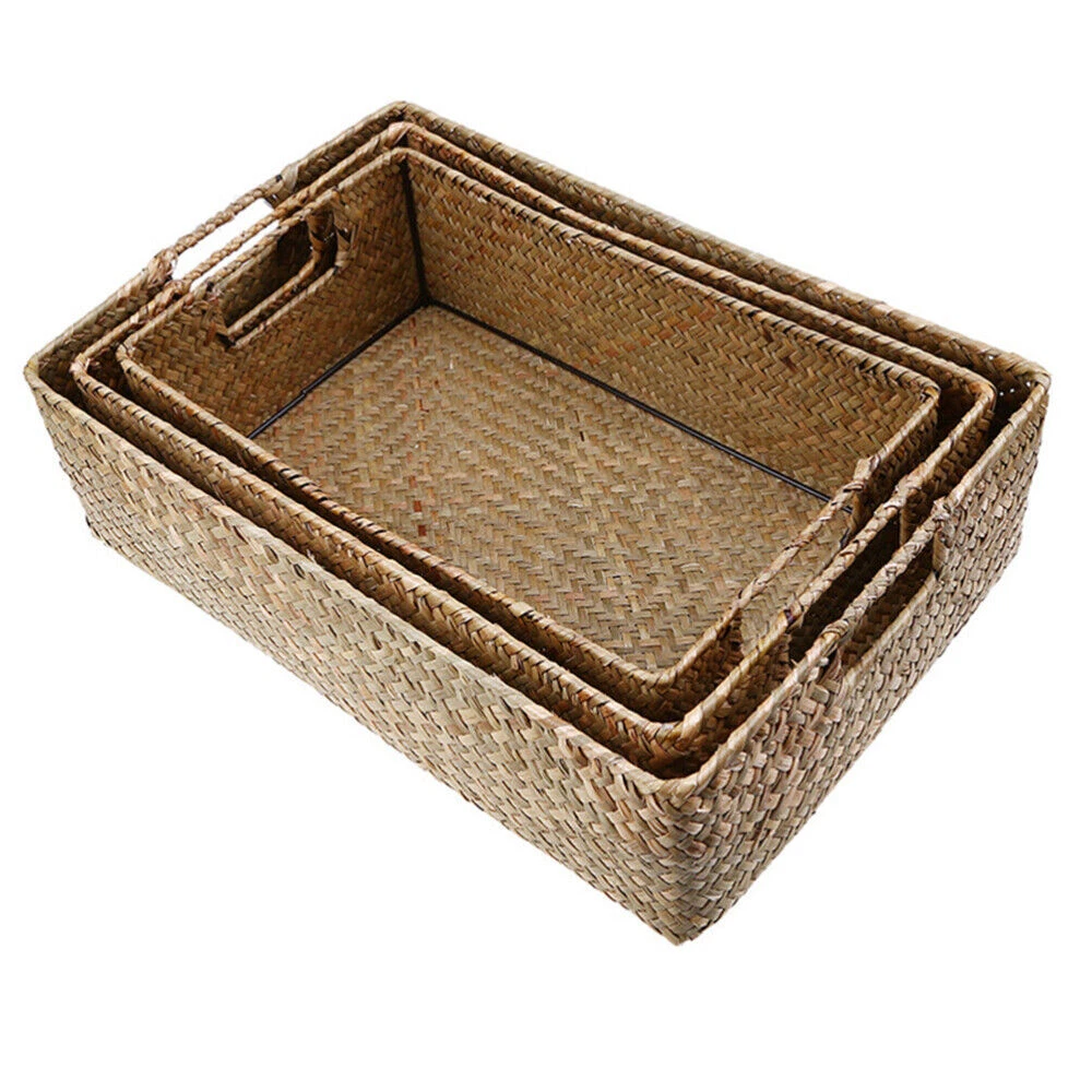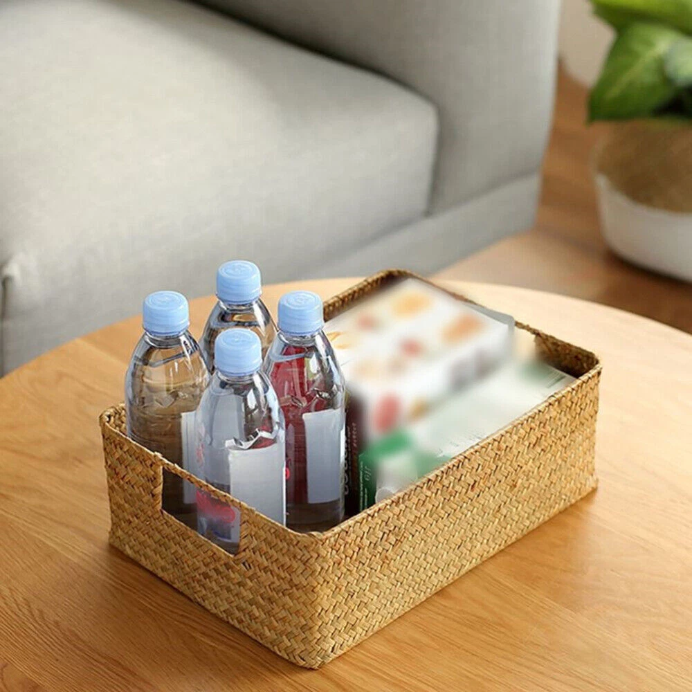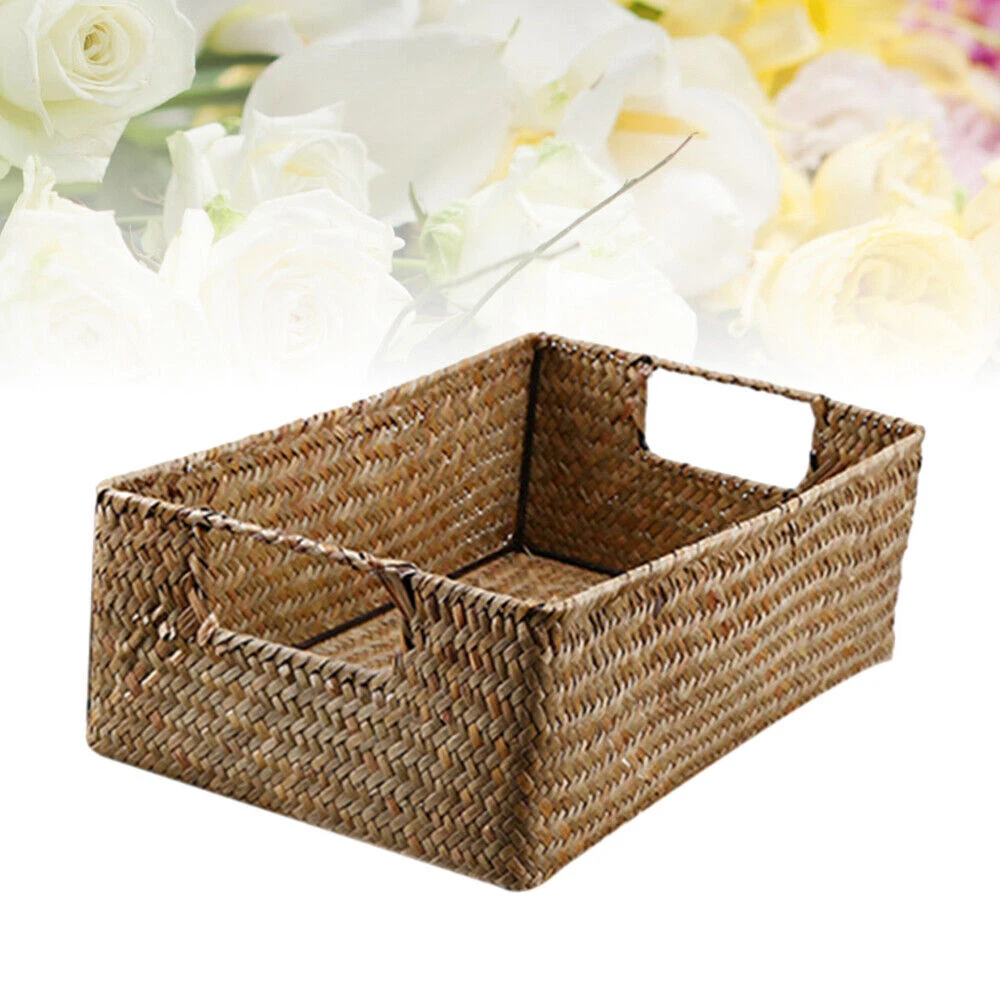 Product parameters Product Name: Straw Storage Basket Material: Iron+Seaweed Color: Yellow, Coffee Dimensions: as follows Yellow small mouth length 34cm, width 24cm, height 11cm, weight 0.26kg Reminder: The storage basket is woven with seaweed. Imperfect weaving and burrs are normal and do not affect use. It has natural splicing joints and is not a quality issue. The size is manually measured, and 1-2 centimeters are normal. Package includes 1 x Storage Basket On Feb 11, 2025 at 01:50:10 PST, seller added the following information: