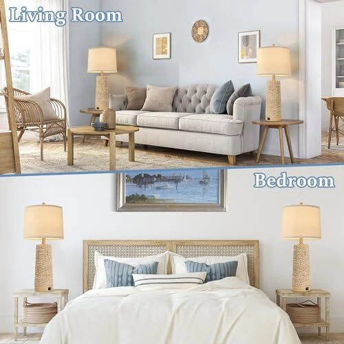 Return Policy Fast Delivery Trusted seller Rattan Table Lamp Set of 2, 27 inch Large Wicker Table Lamp with Dual USB Charging Ports, Boho Bedside Lamps for Nightstand Bedroom Living Room End Table with Rotary Switch Product Description 【Hand Mande Rattan Design】This set of 2 wicker lamps frame is wrapped with detailed rattan, which makes this wicker table lamp more elegant, and it is a perfect blend of nature and home, suitable for a wide range of decorating styles, such as beach style, modern farmhouse style, bohemian style, etc. Whether adorning a cozy reading nook, an elegant office space, or a serene bedroom, the Woven Rattan Desk Lamp brings a touch of refinement to any setting. 【Useful Dual USB Charging Ports】Equipped with 2 built-in charging port, it is a convenient charging station for your electronic devices, including smartphones/pad/watch and other gadgets. Keep your devices powered up and within reach as you work, study, or relax. 【Easy to Install】The installation of the rattan lamps is very simple and come with detailed instructions, you just need to follow the instructions to install all the parts together, the whole process only takes a few minutes! 【Rotary Switch Design】It is easy to use and durable as fewer electronic components that could wear out over time.The switch is energy-efficient and the presence of a rotary switch can evoke a sense of nostalgia and classic design, which can add a touch of vintage charm to the end table lamp's overall look. 【Large Size】This rattan table lamp is larger than the average table lamp, measuring approximately 27 inches in height, and the shade measures approximately 10 inches high and 12 inches in diameter, making it suitable for placement at end table and nightstand table. Shipping Returns Payment Shipping Shipping is FREE to all addresses other than APO/PO boxes in the lower 48 states. All our stock ships from US-based warehouses. Shipped via USPS or UPS (depending on location and package weight) Unless stated otherwise, all orders will ship within 24-72 hours of your payment being processed. Check our feedback to see the great reviews of FAST shipping we offer. Returns Seller does not accept returns Payment We currently accept payment via eBay managed payments only. Once payment is cleared, we will dispatch your shipment within 1-3 business days. Please refer to the "Shipping" tab for more information regarding shipping speed to your destination.