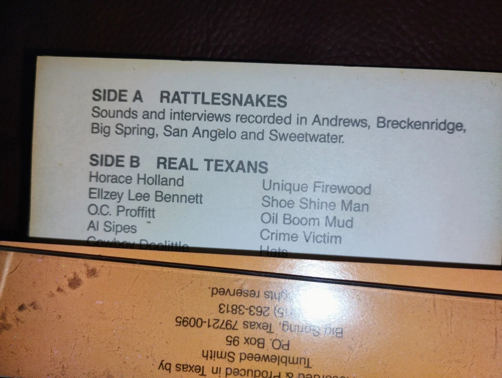 Rattlesnakes And Real Texans 1989 Tumbleweed Smith Spoken Word CASSETTE Tape