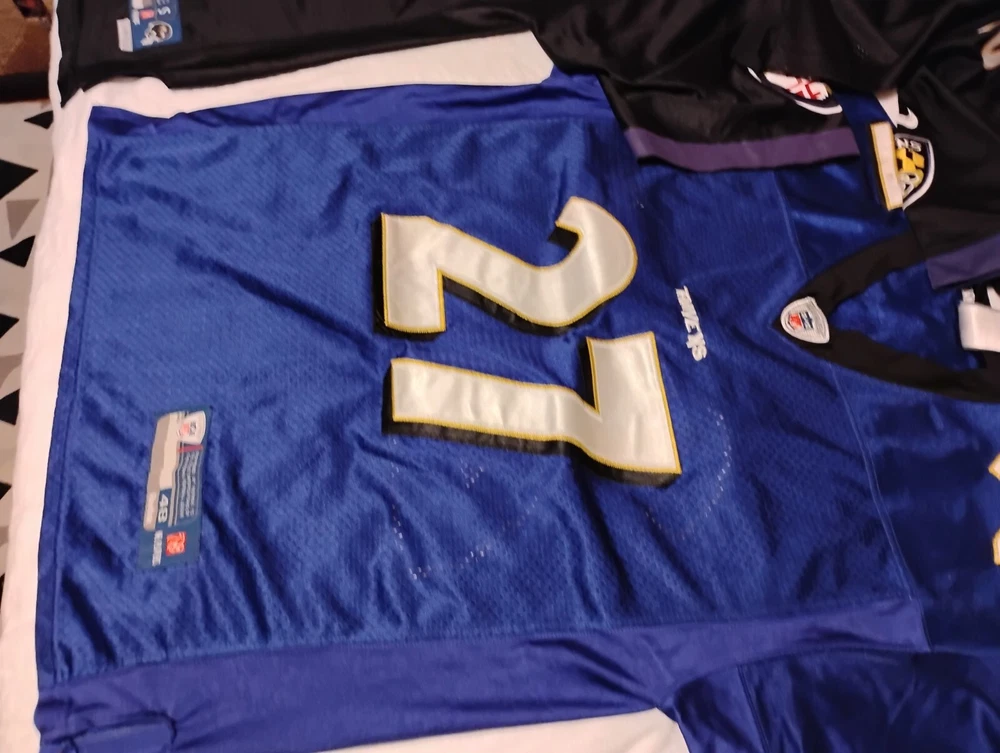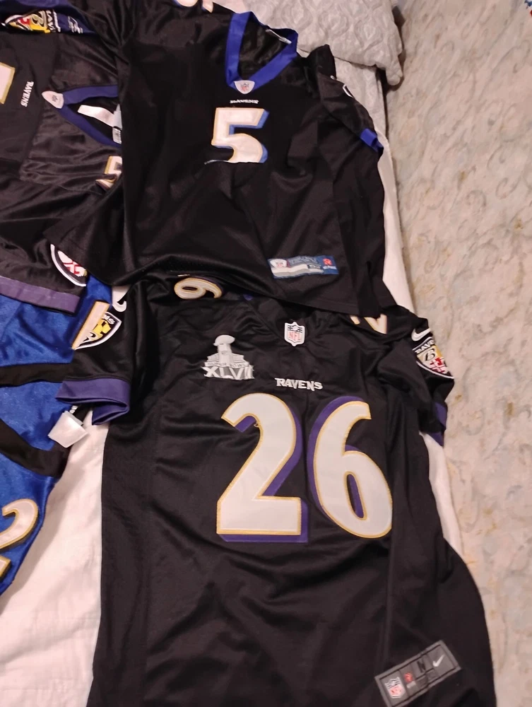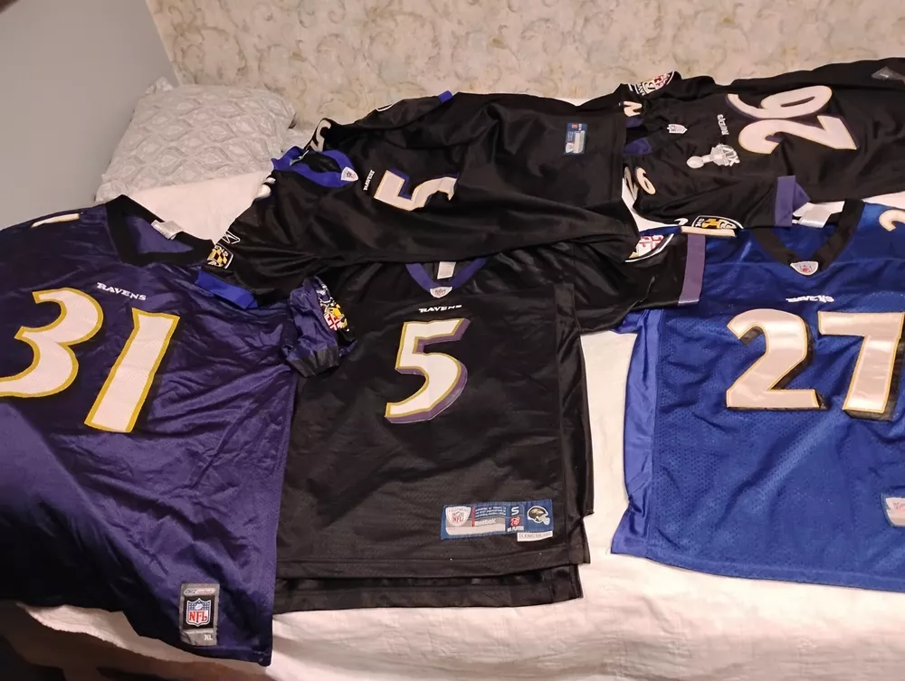 Show off your love for the National Football League (NFL) with this Raven Jersey Lot. Perfect for football fans, this jersey is made from high-quality materials to ensure durability and comfort. Whether you're watching the game at home or at the stadium, this jersey is sure to make you stand out. The jersey features the iconic Raven logo and comes in a striking black and yellow color combination. It's perfect for any fan of the NFL and the Baltimore Ravens. Don't miss out on this opportunity to show your support for your favorite team. Get your hands on this Raven Jersey Lot today!