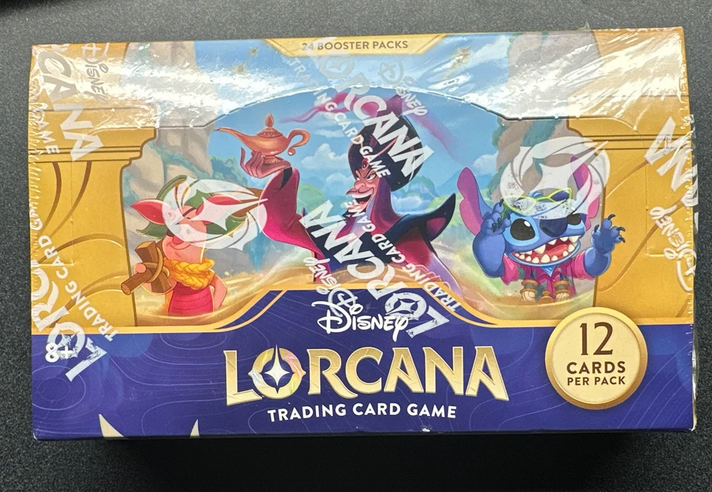 IMMERSIVE TRADING CARD GAME: Dive into the enchanting world of Lorcana with this Disney-themed trading card game - featuring stunning original artwork of beloved characters for an immersive gameplay experience EXPAND YOUR COLLECTION: This 24-pack booster display box is the perfect addition to your Disney Lorcana card collection - offering a diverse array of cards to enhance your game DIVERSE CARD ASSORTMENT: Each booster pack contains a dynamic mix of 12 cards - including common, uncommon, rare cards, super rare or legendary rarity and a randomly selected shiny foil card for added excitement PREMIUM QUALITY: Crafted from high-grade materials for long-lasting durability and visual appeal - these trading cards bring the magic of Disney Lorcana to your fingertips PERFECT GIFT IDEA: This Disney Lorcana booster display box is an ideal gift for both seasoned card collectors and Disney enthusiasts alike - offering hours of engaging gameplay and card collecting fun