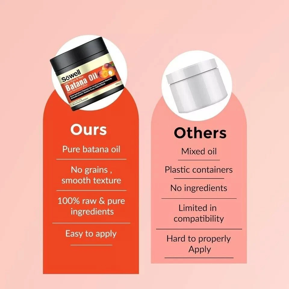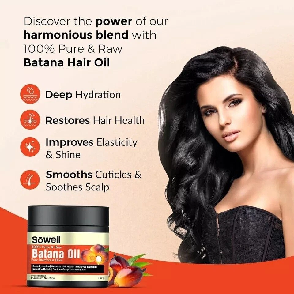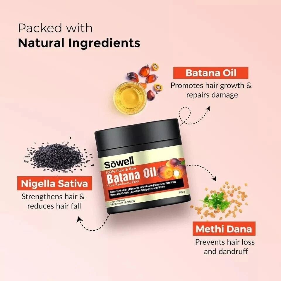 100% Organic Batana Oil Butter from Honduras, natural hair growth 100gm (pack of 1) Sowell 100% Pure & Raw Batana Oil Butter | Pure Rainforest Elixir | Nourishes Hair & Skin | Unrefined & Cold-Pressed, 100g 100% Pure & Raw: Experience the natural goodness of our Batana Oil, extracted from the heart of the rainforest. Unrefined and cold-pressed to retain all its beneficial properties Nourishes Hair & Skin: Our Batana Oil deeply hydrates and revitalizes both hair and skin, promoting a healthy, radiant look Rich in Nutrients: Packed with essential fatty acids, antioxidants, and vitamins, this oil supports overall hair and skin health Versatile Use: Perfect for hair treatments, skin moisturization, and even as a natural remedy for dry, damaged hair and skin. Unrefined & Cold-Pressed: Our Batana Oil Butter is 100% pure, unrefined, and cold-pressed to retain all of its natural nutrients, ensuring maximum benefits for your beauty routine Eco-Friendly & Sustainable: Sourced responsibly from the rainforest, our Batana Oil is environmentally friendly and supports sustainable practices. Note: This Product is designed to deliver optimal results, offering high-quality performance and satisfaction. Please note that individual experiences and outcomes may vary based on personal use, preferences, and unique circumstances. For best results, we recommend following the provided guidelines and ensuring the product is used as intended. Product result may vary for every individual.