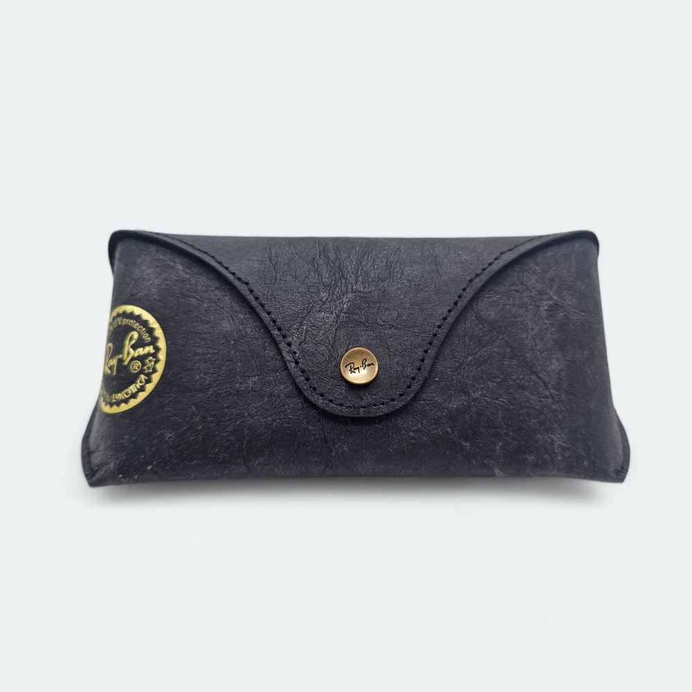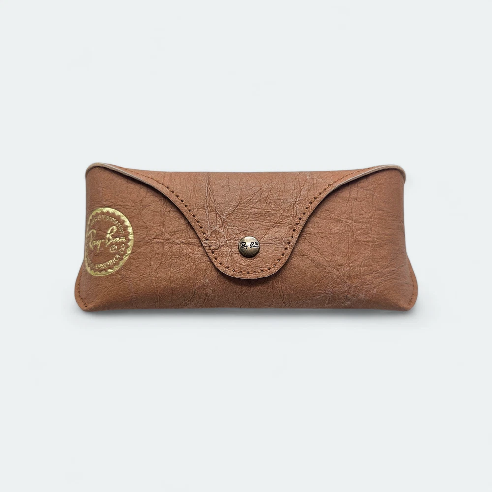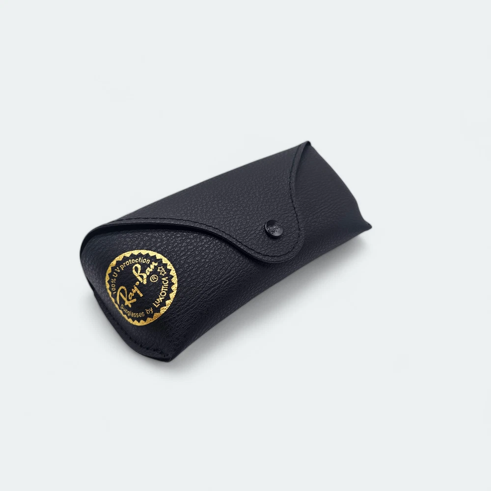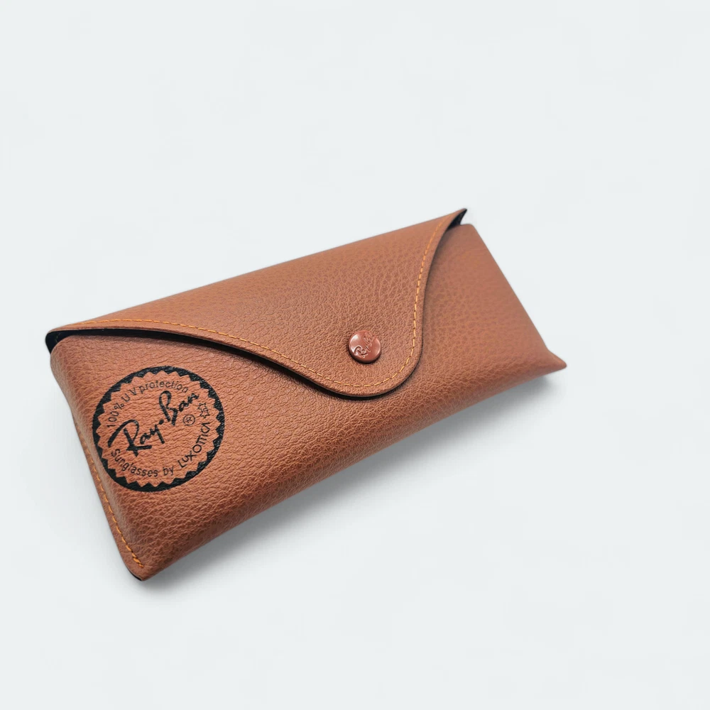 Ray-Ban Universal Eyeglasses a& Sunglasses Pouch Soft Leather & Hard Case Black / Brown Color (Come with Cleaning Cloth) $19.99 - Medium Size Sunglasses Premium Leather Soft Case - Printed Plain w/ Ray-Ban logo graphic - Includes a microfiber cleaning cloth (Except for Orange Pouch) - Durable exterior & soft anti scratch interior - Nice fashionable accent, to store and protect sunglasses or eyeglasses - Classic Finishing