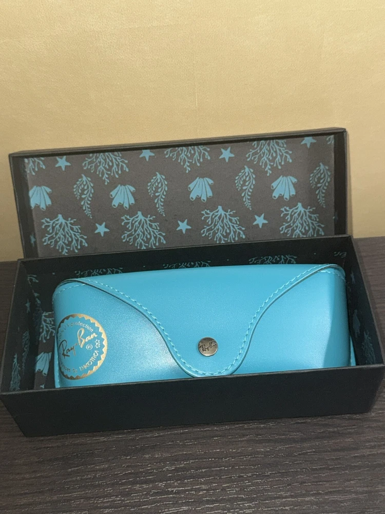 The product is a limited edition collaboration between The Little Mermaid and Ray-Ban. It is a pair of stylish black square sunglasses with polarized blue lenses. The frame is made of plastic, featuring a classic design. These sunglasses are specifically designed for women and would be a fashionable accessory for any outfit. These are from Disneyland Anaheim and are brand new never opened