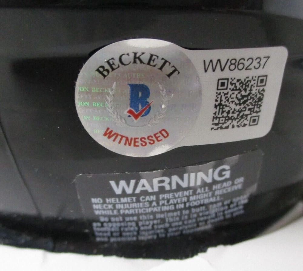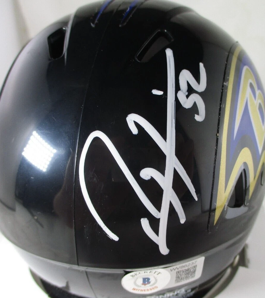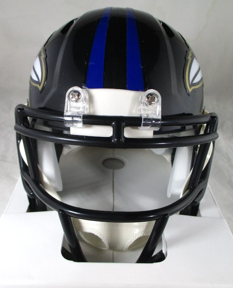 Ray Lewis / Autographed Baltimore Ravens White Lunar Eclipse Mini Helmet / BAS For sale in this listing is a new condition Riddell brand Baltimore Ravens Lunar Ecilpse speed mini football helmet, featuring the Baltimore Ravens logo appearing on both sides of the matte white helmet.The helmet has been autographed by NFL Hall of fame member and former Baltimore Ravens Superstar Linebacker ray Lewis in purple sharpie across the back of the helmet.Next to his signature Lewis has inscribed his player number "52" in purple sharpie. The autograph has been authenticated by Beckett Authentication Services with a witnessed authentication sticker and matching QR code affixed to the helmet as shown in the listing photos. Thank you for your interest in this item. For sale in this listing is a new condition Riddell brand Baltimore Ravens speed mini football helmet, featuring the Baltimore Ravens logo appearing on both sides of the black helmet. The helmet has been autographed by NFL Hall of fame member and former Baltimore Ravens Superstar Linebacker ray Lewis in white paint pen across the back of the helmet. Next to his signature Lewis has inscribed his player number "52" in white paint pen. The autograph has been authenticated by Beckett Authentication Services with a witnessed authentication sticker and matching QR code affixed to the helmet as shown in the listing photos. Thank you for your interest in this item.