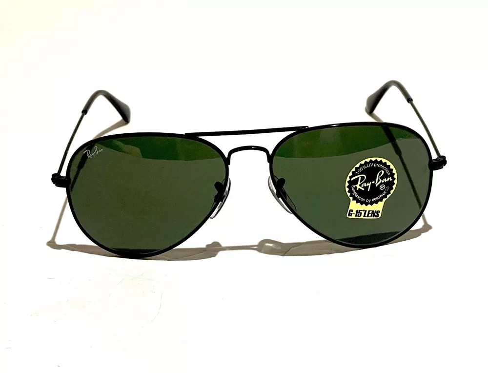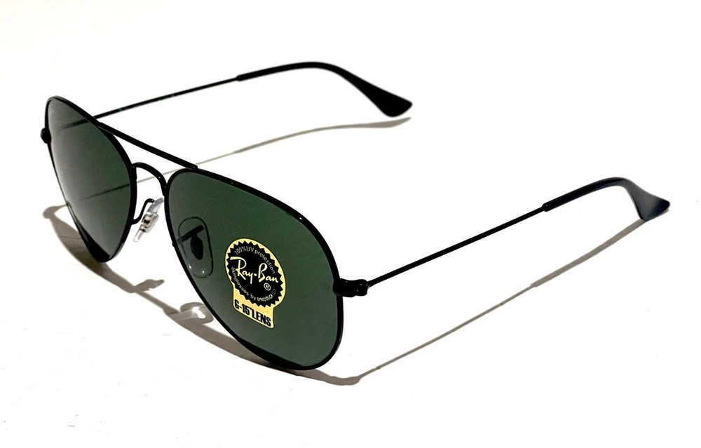 GUARANTEED 100% AUTHENTIC Product Details: Model code: RB3025 L2823 58-14 Currently one of the most iconic sunglass models in the world, Ray-Ban Aviator Classic were originally designed for U.S. aviators in 1937. Aviator Classic sunglasses are a timeless model that combines great styling with exceptional quality, performance and comfort. With a classic gold frame, you can see the world with optimum visual clarity and 100% UV protection. Frame material: Metal Frame color: Black Lenses: Classic Green G-15 Shape: Pilot Size lens-bridge: 58 14 Temple Length: 135 Package includes: microfiber cloth, paperwork, Ray-Ban Sunglasses, case and outer box. Shipped with USPS First Class. thank you for shopping with us !!