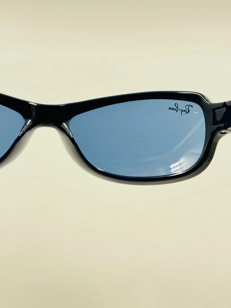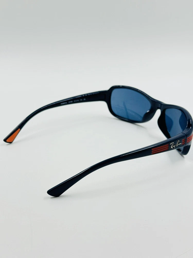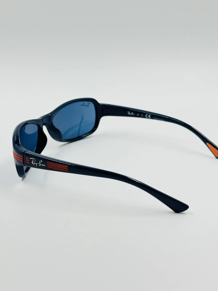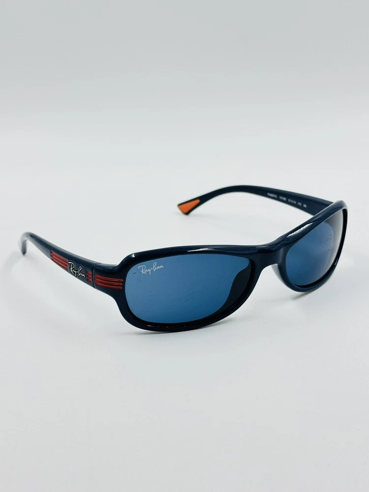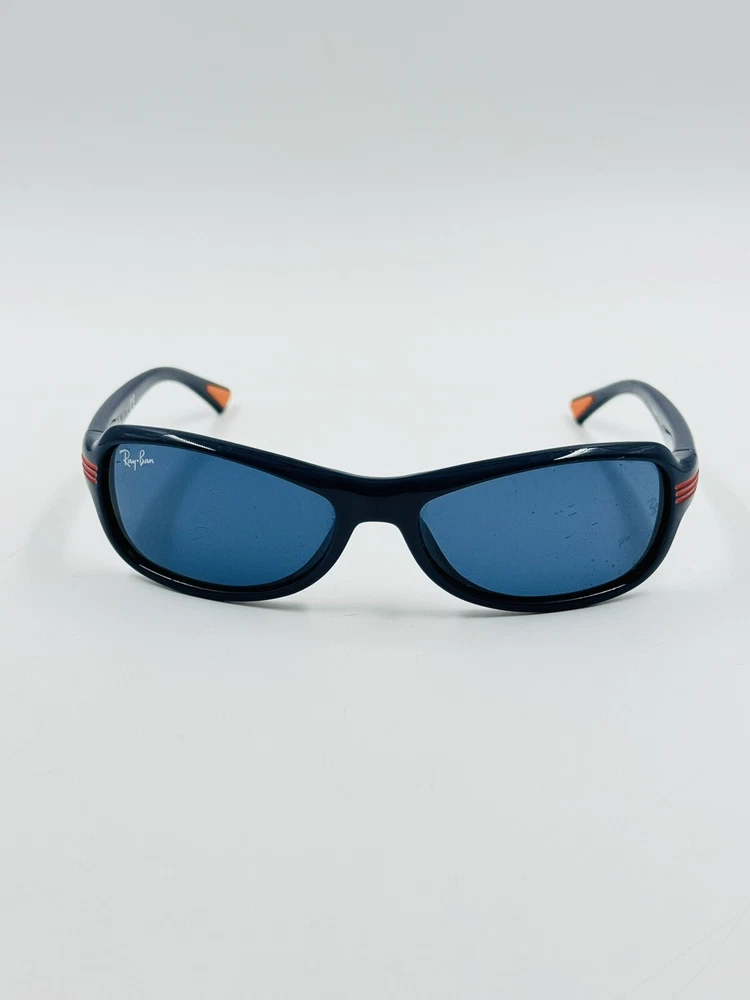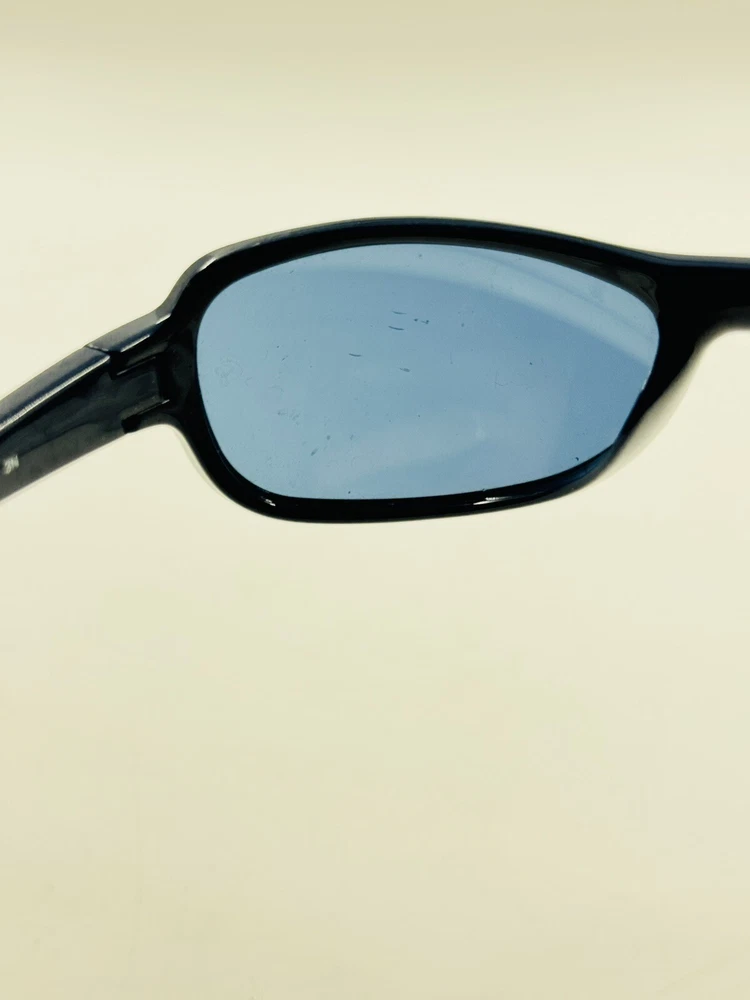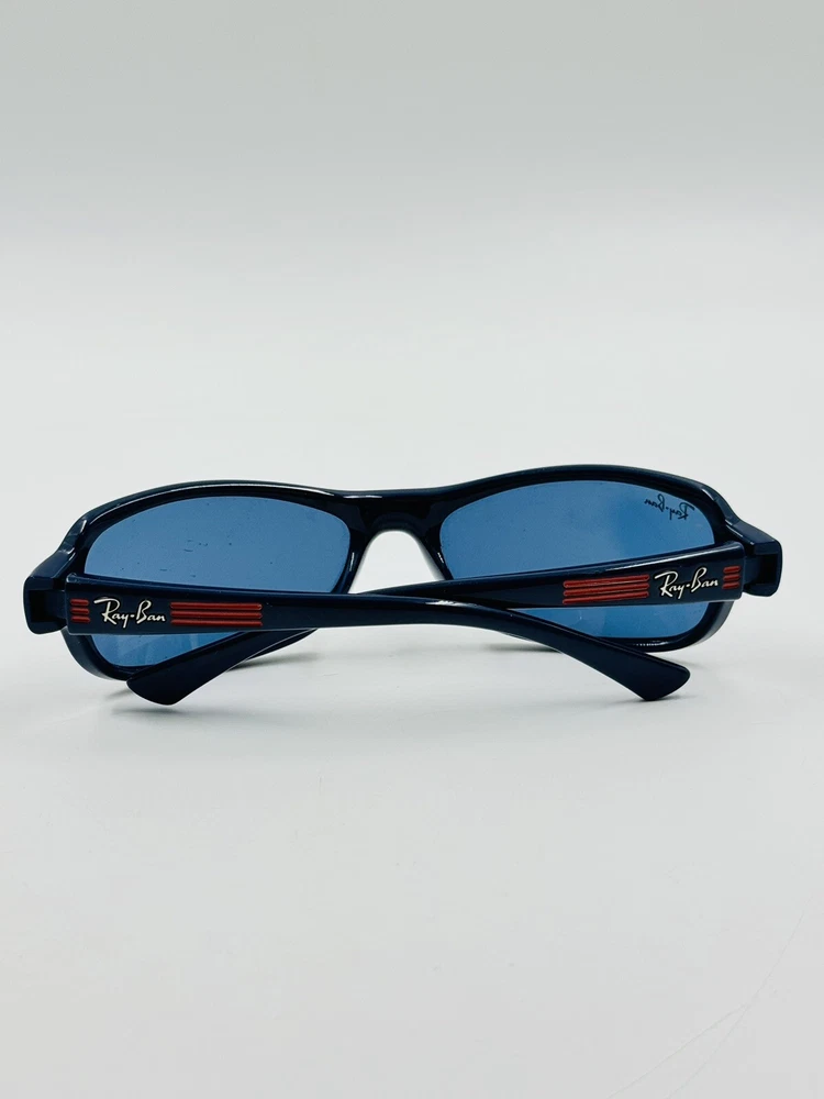 Navy blue red accent on frame with blue lens. Lens have some scratches