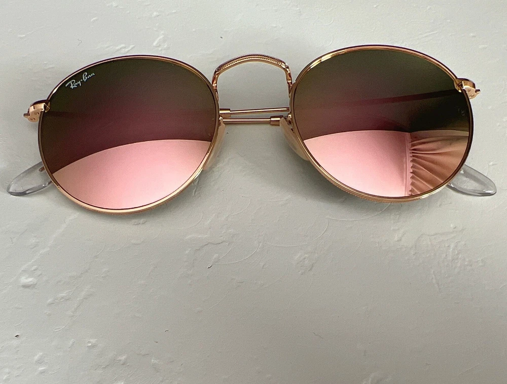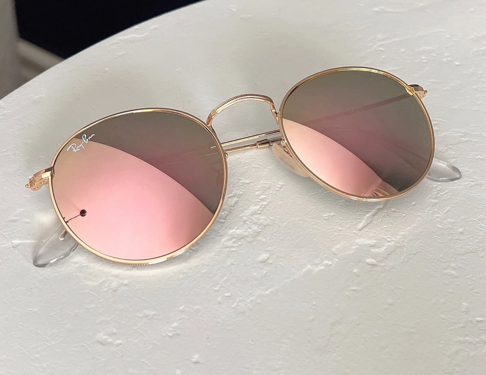 RayBan RB3447 Round Women Sunglasses Flash Mirror Lens Gold Frames. Condition is New with tags. Shipped with USPS Ground Advantage.