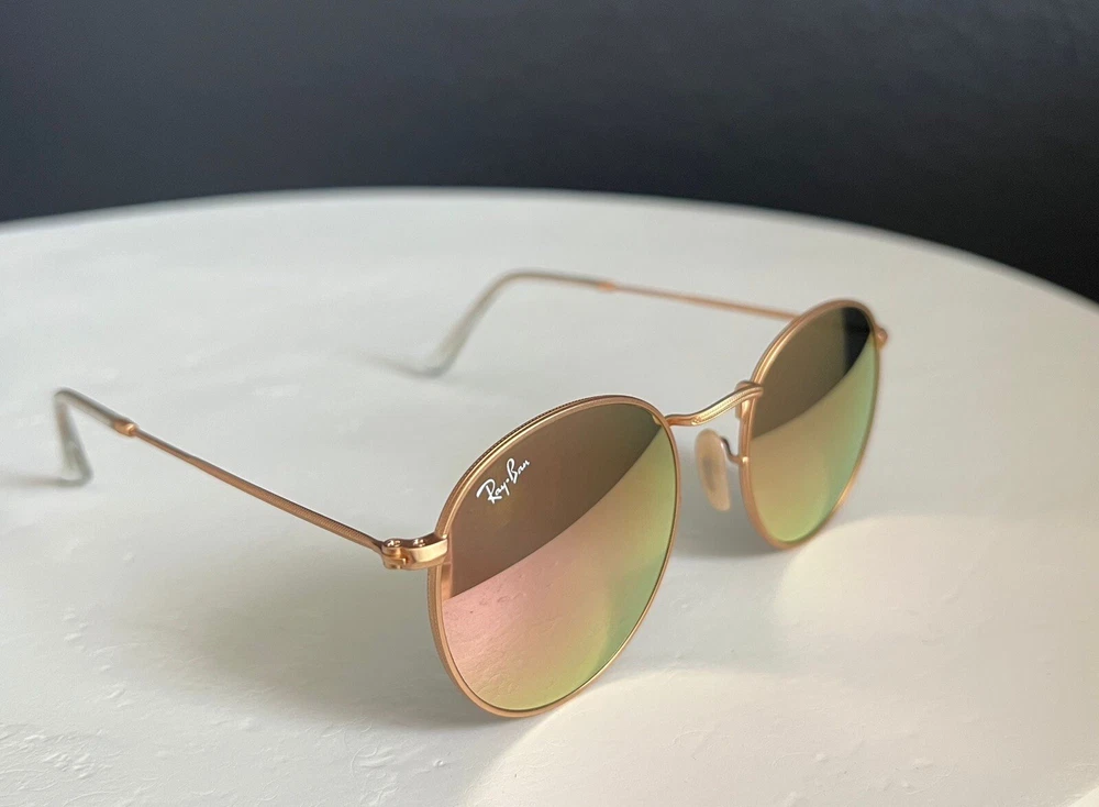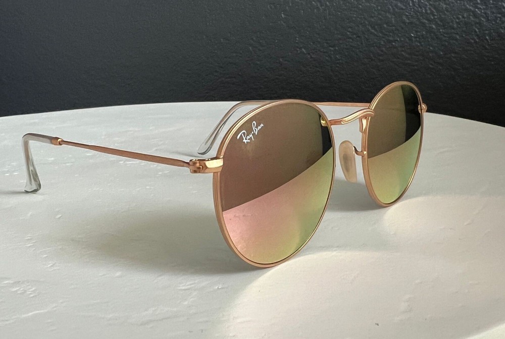 RayBan RB3447 Round Women Sunglasses Flash Mirror Lens Gold Frames. Condition is New with tags. Shipped with USPS Ground Advantage.