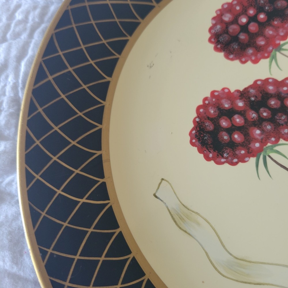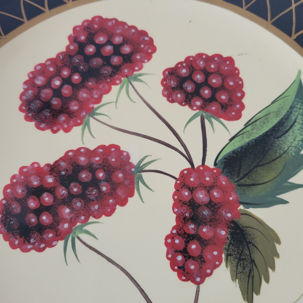 Vintage Raymond Waites Decorative Wall Plate Vintage Excellent Quality Good Condition Designed for Toro Trading Co Raspberries design The plate features a black and gold trim Off white center with Raspberry The back of the plate is black See our other plates in this collection.