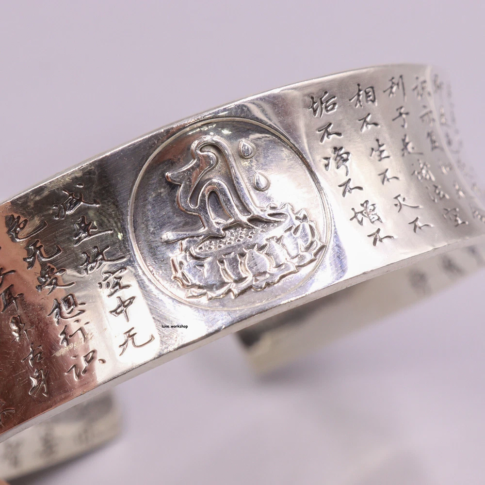 Our picture, description, Unauthorized Use is Strictly Prohibited.---eBay Seller: luxe.workshop SPECIFICATIONS The item Are Made By Pure 990 Silver,it support test Metal:Pure Silver 990(Fine Silver) Bangle Inside Diameter:Can adjust from 60mm (2.36inch) to 62mm (2.44inch), Fit the wrist width less than 2.44inch Silver Weight:74-75g Band Width: 19mm Stamp:S990 If you encounter silver products turning black or yellow, please do not worry. This is due to silver oxidation. You only need to follow the cleaning method on our details How to Choose fit Bangle: Measured wrist width,the wrist width need less than bangle inside diameter How to wear an open bangle: Pull the bangle with equal force on both hands (just gently pull it). Wear it from the narrowest part of the wrist(The opening of the bangle is not easily widened when being pulled apart) . After putting it on, close the bangle(Dear, you're all set with the wearing now). The function of silver: Silver products can generate a magnetic field within a certain range, releasing a large amount of silver ions. Silver ions have strong bactericidal effects and have health benefits for the human body. It not only has economic value, but also is beautiful and generous. The ancients said that carrying silver will accompany health, wealth, and prosperity, not only because of its precious metal, Medically, it has a higher efficacy on human health than gold. What does 990 silver mean? 990 silver refers to silver products with a silver content of about 99.0%, and a purity of about 99.0% is recognized as pure silver, which is soft and easily oxidized . Why does silver jewelry turn black after wearing it for a long time? The blackening of silver jewelry worn is a normal oxidation. Because silver reacts chemically with sulfur in the air over a long period of time to produce black silver sulfide, it can cause silver jewelry to gradually turn black. How to deal with blackened silver jewelry? You can try using a drawing eraser to wipe away the slight black oxide on the surface of the silver jewelry. You can try applying a small amount of toothpaste on the surface of the silver jewelry, then using a toothbrush dipped in warm water to scrub, and finally drying it with a full wool soft cloth. When the surface of silver jewelry shows slight discoloration due to mild corrosion, it can be gently wiped with detergent or hot medium-sized soap. First, use a soft bristled brush to wash, and then dry with full wool soft cloth. At this time, the silver jewelry will show its original brightness. Wash the silver jewelry by heating it with laundry detergent and boiling water to form a solution, then wet the surface with phosphoric acid solution and wipe it with a cloth to make it cleaner. When silver jewelry oxidizes, it presents a light coffee color. It can be wiped with a soft cloth dipped in a little silver oil, soaked in silver washing water, or directly wiped with a silver cloth. Soak the silver jewelry in silver washing water for a while, then take it out and rinse it with clean water. Thai Silver Maintenance: The best maintenance method for Taiyin is the same as jade, which is to wear it every day. The natural oil produced by the human body can keep Taiyin jewelry warm and shiny. (Of course, there are exceptions. Some people's sweat contains ingredients that can turn silver black.) When not wearing it, it is important to pack it in a closed bag to prevent the surface of the silver jewelry from oxidizing and turning black when exposed to air Daily cleaning method: Put some toothpaste on the silver jewelry, add some water, rub it appropriately until small bubbles appear, and then rinse with clean water to restore its shine. When wearing silver jewelry, do not wear other precious metal jewelry at the same time to avoid collision, deformation or abrasion. Do not wear while taking a shower, as some cleansers and shampoos contain alkaline ingredients that can oxidize and corrode Thai silver; Do not wear it when swimming, especially when swimming in seawater or soaking in hot springs. Wearing silver jewelry requires regular cleaning. When wiping silver jewelry, a soft cloth, preferably a professional one, should be used. Silver wiping cloth contains maintenance ingredients and cannot be washed with water. The difference between pure 999 silver and Thai silver 925: The natural color of pure silver jewelry is generally yellowish. In order to float, chemical plating is used to coat a layer of silver on the surface of pure silver, which is a bright white color. Some pure silver surfaces are not coated with bright silver using chemical plating methods. This type of pure silver tends to be yellowish, revealing the natural color of silver, which is beige. Thai silver, Its craftsmanship comes from Thailand. In terms of material, it is 925/990 pure silver, which is a special term for a vintage and special craftsmanship. Also known as' Wuyin '. Due to special anti-aging treatment, black silver jewelry not only does not change color for a long time, but also greatly enhances its surface hardness. The unique texture and color make this jewelry rough and rustic. SHIPPING POLICY Our All Items Will Be Dispatched Within 1-5 Business Day By Airmail After The Payment Is Clear. . Generally You Will Receive Your Order Within 10-45 Business Days After We Dispatched Your Package To The Delivery Company. We Cannot Guarantee The Delivery Timeframe If The Post Office Has Any Unexpected Delays Due To Holiday, Weather, Customs, Or Other Conditions. Please Choose Some Local Sellers, If You Cannot Wait Patiently In The Shipping Time We Declared. We Appreciate Your Patience If You Haven't Received Items In 60 Days(Due To Local Delivery System And/Or Customs). If You Are Concerned In Any Way, Please Feel Free To Contact Us Via Ebay Message Instead Of Leaving Negative/Neutral Feedback Or Opening A Dispute. We Will Make Every Effort To Fix Any Problem(Resend Or Refund Any Missing Item). Customs Duty Is Obli
