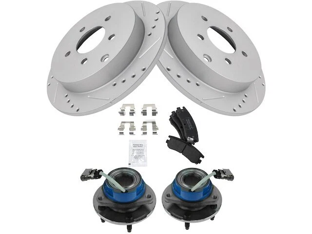 Rear Brake Pad and Rotor and Wheel Hub Kit fits Venture 2002-2004 AWD 13PBXX Rear Brake Pad and Rotor and Wheel Hub Kit fits Venture 2002-2004 AWD 13PBXX Position: Rear Brand: TRQ Brake Pad and Rotor and Wheel Hub Kit Condition: New Product Description Notes: Brake Pad & Rotor Kit Features: Semi-Metallic Improved Stopping Power: Cross-drilled slotted to reduce brake fade Longer Lasting: True non-interference vane design for optimized cooling Positive Molded: Less dust resulting in cleaner wheels Multi-Layer Shim: Reduced noise and vibration Direct Replacement: No modifications necessary Product Specifications Coating: Premium G-Coated Type: Performance Package Contents: (2) Rear Wheel Bearing & Hub Assemblies; (1) Rear Semi-Metallic Brake Pad Set with Contact Point Grease & Hardware; (2) Rear G-Coated Performance Brake Rotors Detailed Applications Years Vehicle Sub Model 2002-2004 Chevrolet Venture AWD Warranty Coverage Policy 12 Month Warranty 30 Day Return Policy Return shipping paid by: Buyer Item must be returned within: 30 Days Refund will be given as: Money Back DO NOT SEND RETURNS BACK WITHOUT A VALID RMA NUMBER If you have an issue after receiving your part, please email us directly through eBay