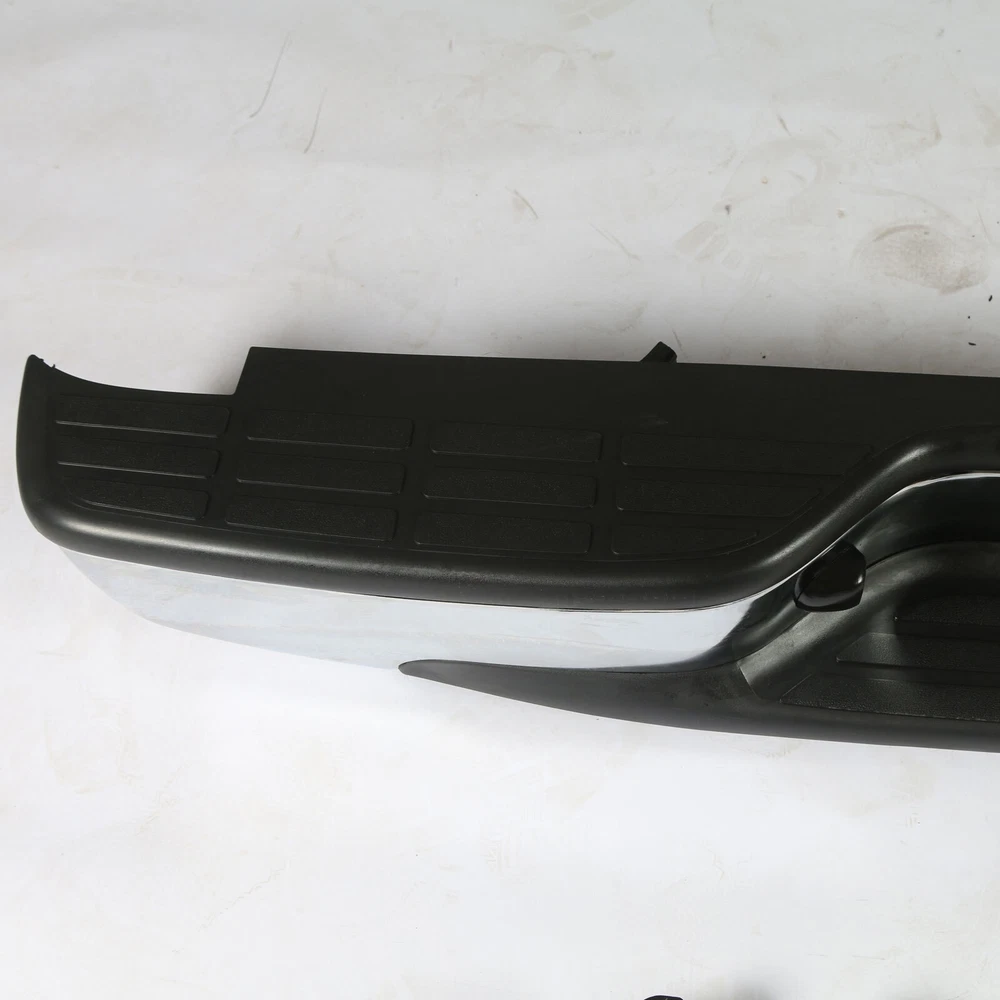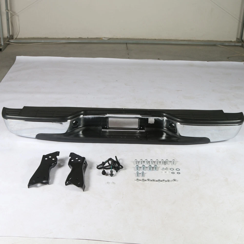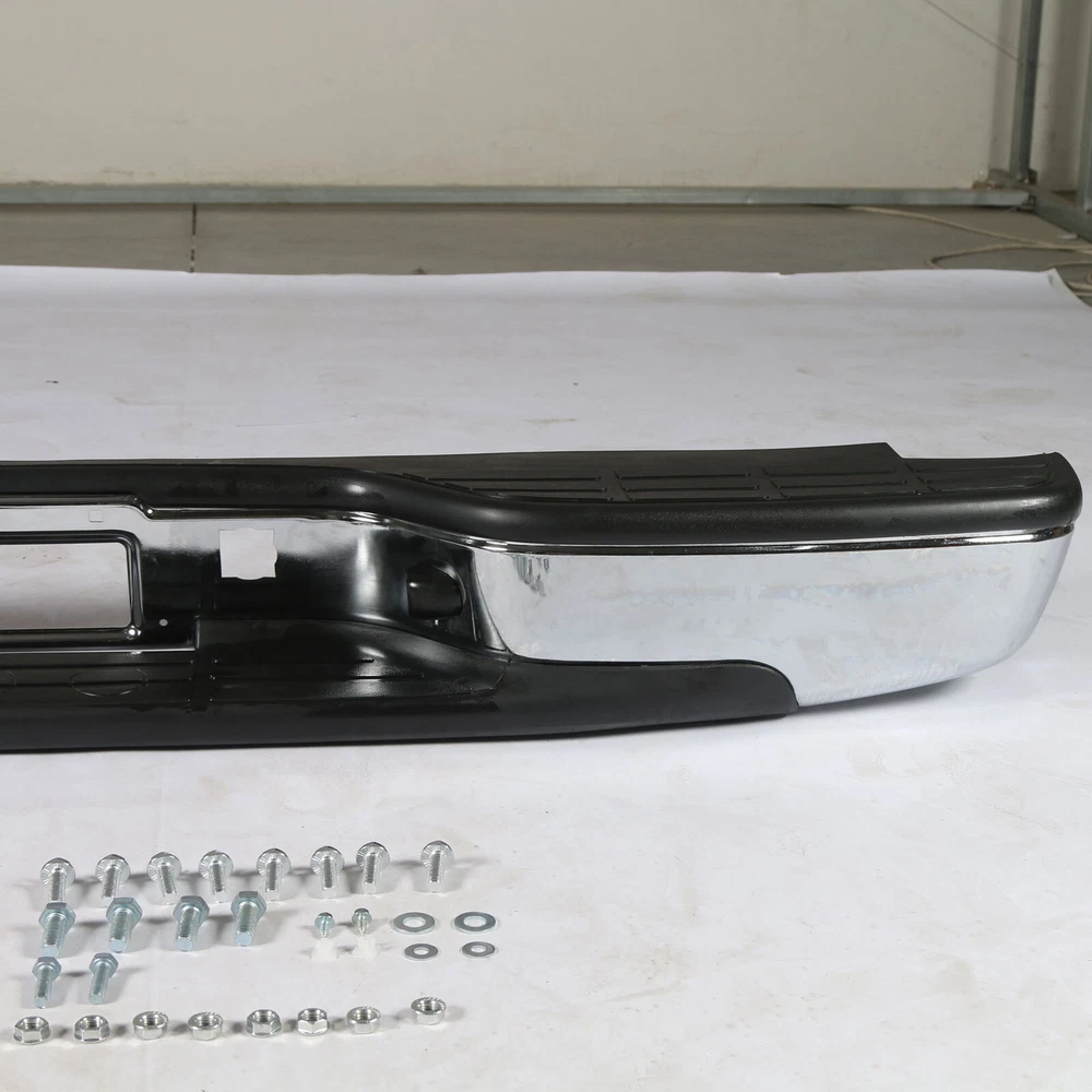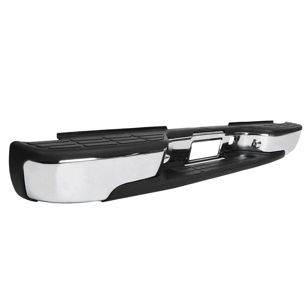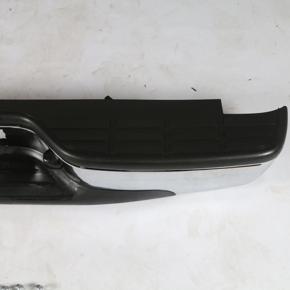 Feature Condition: 100% Brand New Color: Chrome Bumper + Black Step Pad Material: Steel + ABS Plastic Placement on Vehicle: Rear Comes with a Complete Set of Step Pads Requires no Modification or Drilling Upgrade and replace your standard or worn rear bumper with a new one. Professional Installation is Highly Recommended Installation Instruction is NOT Included Fits For 1999-2006 Chevrolet Silverado 1500 For 2007 Chevrolet Silverado 1500 Classic For 1999-2004 Chevrolet Silverado 2500 For 1999-2006 GMC Sierra 1500 For 2007 GMC Sierra 1500 Classic For 1999-2004 GMC Sierra 2500 Fits Models without Parking Sensor Holes Package Include 1×Rear Bumper 1 Set of License Plate Lamp Wiring Harness 2×License Plate Lamps Some bolts and screws On Jul 9, 2024 at 09:48:42 PDT, seller added the following information: On Jul 11, 2024 at 17:41:38 PDT, seller added the following information: On Jul 24, 2024 at 08:58:26 PDT, seller added the following information: On Nov 20, 2024 at 13:46:47 PST, seller added the following information: On Dec 11, 2024 at 17:48:42 PST, seller added the following information: On Dec 11, 2024 at 20:49:49 PST, seller added the following information: