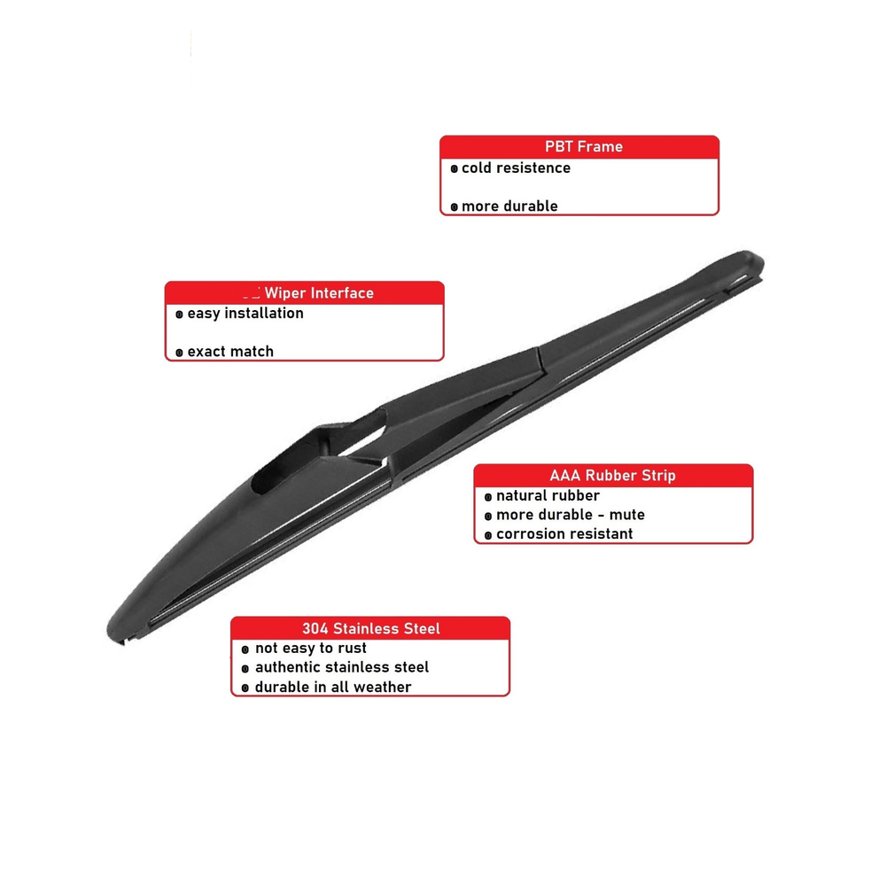 This rear wiper arm and blade set is a perfect fit for my Fiat 500! The ABS and rubber construction feels durable, and it hugs the rear windshield tightly for a streak-free wipe. The upgraded spring pressure keeps the blade firmly in contact, even in heavy rain. Installation was quick, and it looks just like the OEM part. Great visibility and peace of mind in bad weather—highly recommend!
