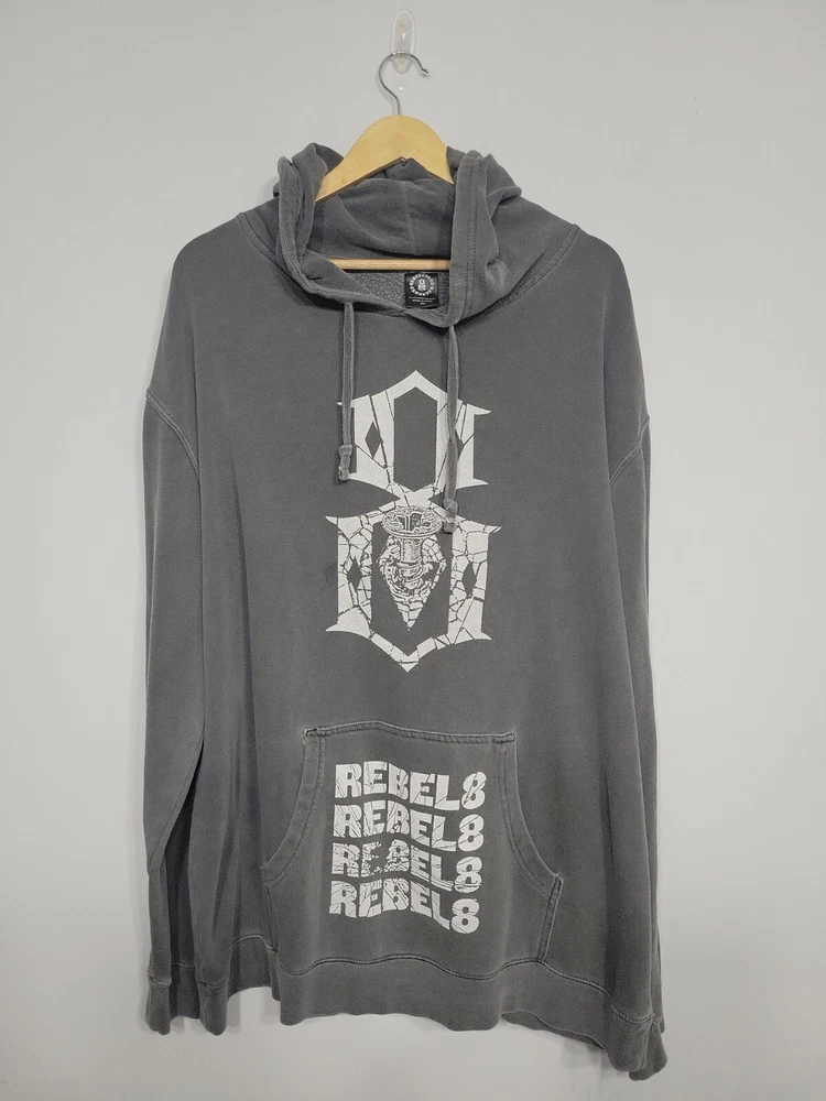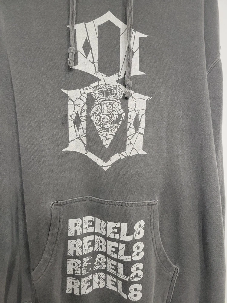 Rebel 8 Men's Hoodie Size 2XL Grey Skulls FTW Y2K Pre-owned very good condition 32 and a half inches long 28 inches across N5F