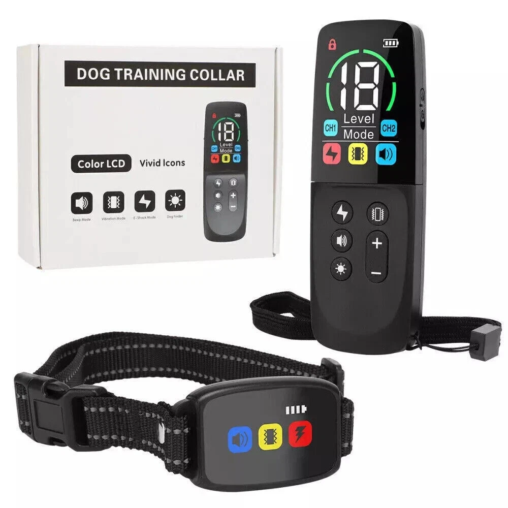 Description Dog training collar with descriptive symbols - improves visual training feedback: Large LCD color screen with clear and vivid display. The same training icons are displayed on both the remote control and the dog training collar. When the remote control sends a training command, the corresponding training icons on the collar will light up, which displays the working status of the electric shock collar more intuitively and improves visual feedback during training. 3 training modes - increasing training effectiveness: YOUKUKE dog training collar with remote control offers 3 training modes: beep (8 different tones), vibration (1-8 levels) and static shock (1-18 levels). The adjustable training levels allow training to be tailored to the differences of each dog. Adjust the level according to the dog's response and behavior to meet their needs and abilities. How to effectively change your dog's bad habits by using dog shock collars. Fast response time - improving the training experience: YOUKUKE dog shock collar with remote uses a smart chip to shorten the response time. When your dog wants to show a positive behavior or make a correction, click the button and the signal will be quickly transmitted to the collar, ensuring that your commands are transmitted accurately and immediately. This allows your furry companion to understand without confusion. It supports 2 channels and can control 2 collar receivers at the same time (only 1 collar receiver is for sale, if you need an additional collar receiver, please contact us to purchase it separately). Fast response time - improving the training experience: YOUKUKE dog shock collar with remote uses a smart chip to shorten the response time. When your dog wants to show a positive behavior or make a correction, click the button and the signal will be quickly transmitted to the collar, ensuring that your commands are transmitted accurately and immediately. This allows your furry companion to understand without confusion. It supports 2 channels and can control 2 collar receivers at the same time (only 1 collar receiver is for sale, if you need an additional collar receiver, please contact us to purchase it separately). Small design - improving wearing comfort: Our dog shock collar is smaller design. Compact collar reduces the burden on the dog's neck, ensuring long-term wearing comfort. The waterproof receiver allows you to use the dog training collar with remote for outdoor training. The band is soft and odorless, dog shocker for large, medium and small dogs, all breeds with neck girth of 15-68 cm and weight of 3.6-54 kg. Please measure the neck girth and adjust the strap before use. Long battery life - extended operating time: The dog training collar extends the battery life. Comes with a charging cable, please use it to charge. Train and enjoy, get the well-behaved puppy you've always dreamed of with YOUKUKE rechargeable dog shock trainer collar. Technical data: Handheld transmitter material: ABS Receiver material: ABS Collar material: nylon Color: Black Functions: Static shock, vibration, beep, flashing dog search icons Remote transmitter battery: Built-in 300 mAh (120 days standby time) Collar receiver battery: Built-in 300 mAh (45 days standby time) Charging port: Type-C USB Charging time: about 2 hours with DC 5V 1A Remote control range: up to 800 m (open area) Frequency: 433 MHz Suitable dog: Large, medium and small dogs (3.6-54 kg) Waterproof: IP67 (E-collar) Handheld remote control size: about 130 x 45 x 20 mm Collar receiver size: about 56 x 40 x 18 mm Certification: CE, FCC, ROHS, MSDS (documentation available) Scope of delivery: 1 x Remote transmitter 1 x Collar receiver 1 x Nylon collar 1 x Lanyard for remote transmitter 4 x Conductive silicone cover (1 pair long + 1 pair short) 1 x USB charging cable (Y-splitter, 1 to 2) 1 x Test lights 1 x User manual (English)