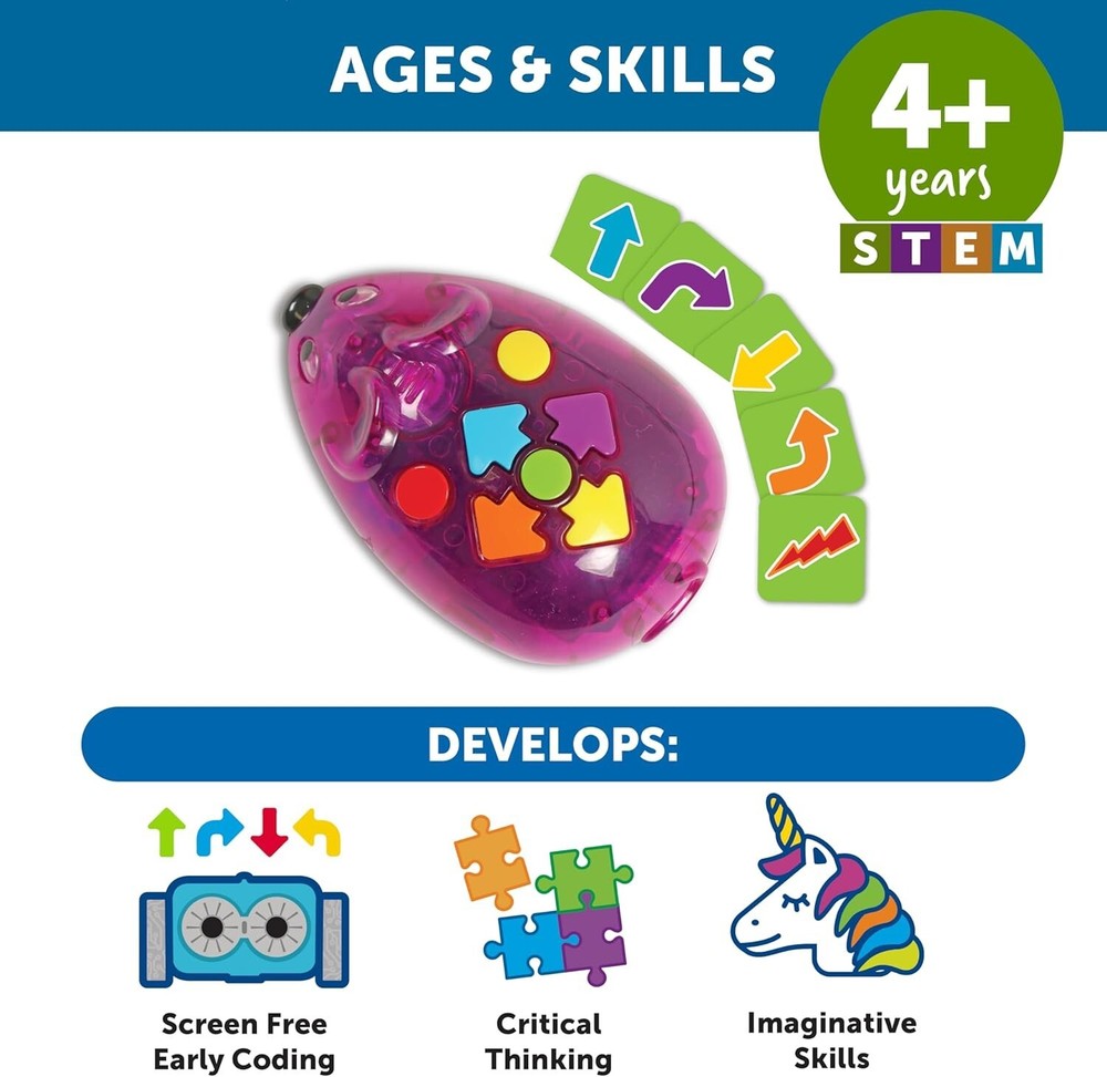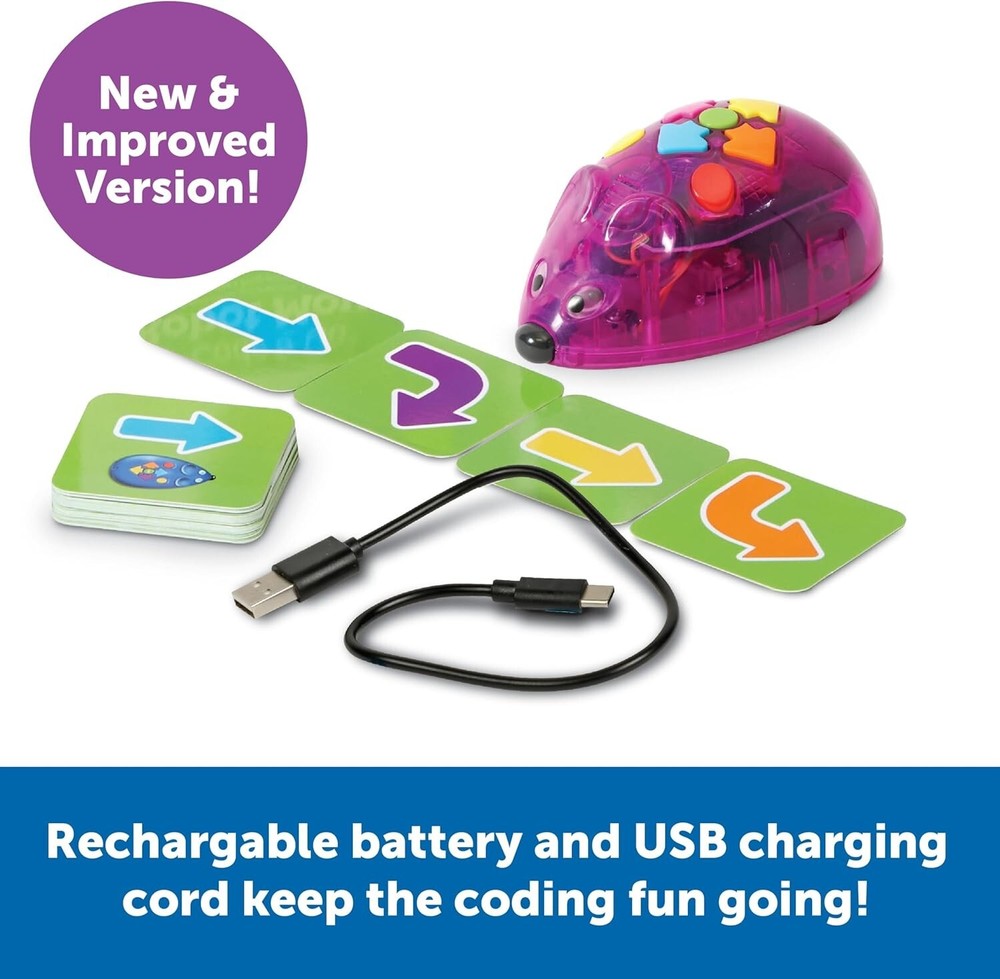 Learning Resources Rechargeable Code & Go Robot Mouse - STEM Toys for Kids, Coding Toys for Boys and Girls Ages 4+ Introduce children to coding with this easy programmable Mouse; Mouse lights up and sounds and also features two speeds are perfect for tabletop or floor play. Kids will develop problem solving, critical thinking, and basic coding skills with this fun and interactive robot mouse. Easy-to-Use: Use the pictorial direction coding cards to plan a path; then, program the mouse with easy push-button controls and send him on his way to follow your commands Kids will experience STEM Learning: Part of the STEM line of activity sets that help students experience STEM through hands-on activities and experiments while challenging them to think critically, solve problems effectively, and acquire the skills needed to enter stem-related fields Give the Gift of Learning: Whether you’re shopping for holidays, birthdays, or just because, toys from Learning Resources help you discover new learning fun every time you give a gift! Ideal gift for Christmas, Stocking Stuffers, Easter Baskets Stuffers or even for Homeschool.