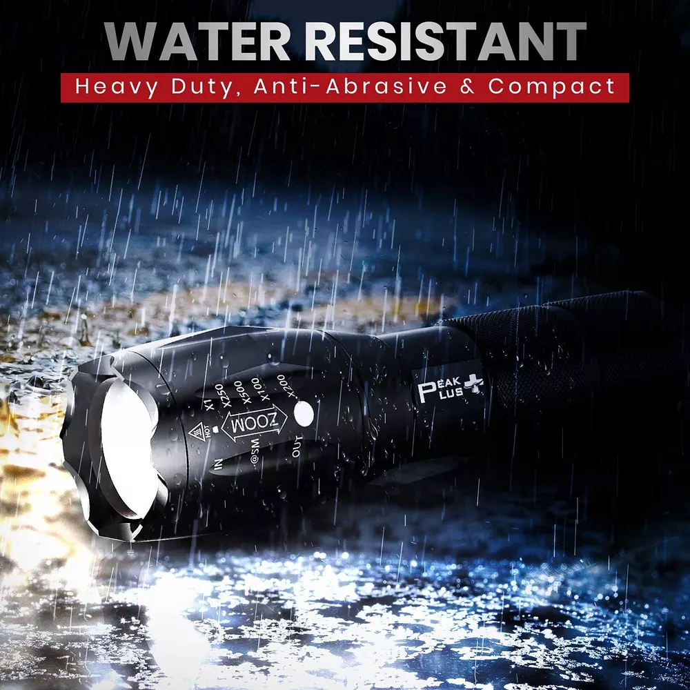 Full Flashlight Kit: 1 Super Bright Tactical LED Flashlight, 1 Rechargeable Battery and Sleeve, 1 USB Battery Charger, 1 Case, 1 AAA Battery Holder and 1 User Manual. No standalone lithium batteries are sold with the product. A rechargeable battery specifically manufactured for our flashlight is included. High Power Brightness: High Lumens LED makes our flashlight 10 times brighter than old incandescent flashlights. Runs on either a rechargeable battery or 3 AAA batteries. Heavy Duty: Water resistant, anti-abrasive, skid proof, compact design makes it the top pocket flashlight for all situations, outdoor activities, camping, hiking, fishing, home use and as a powerful emergency light. 5 Light Modes & Zoom Function: Full, Medium, Low Brightness, Strobe & SOS. Adjustable focus as a spotlight that throws an intense beam of light up to 600 feet ahead or small floodlight that illuminates a wide area. Excellent After-Sales Service: Our customer support is ready to serve you if you experience any issue with our product. Simply reach out to us and we will respond within 24 hours. We provide a one-year no-questions-asked replacement.