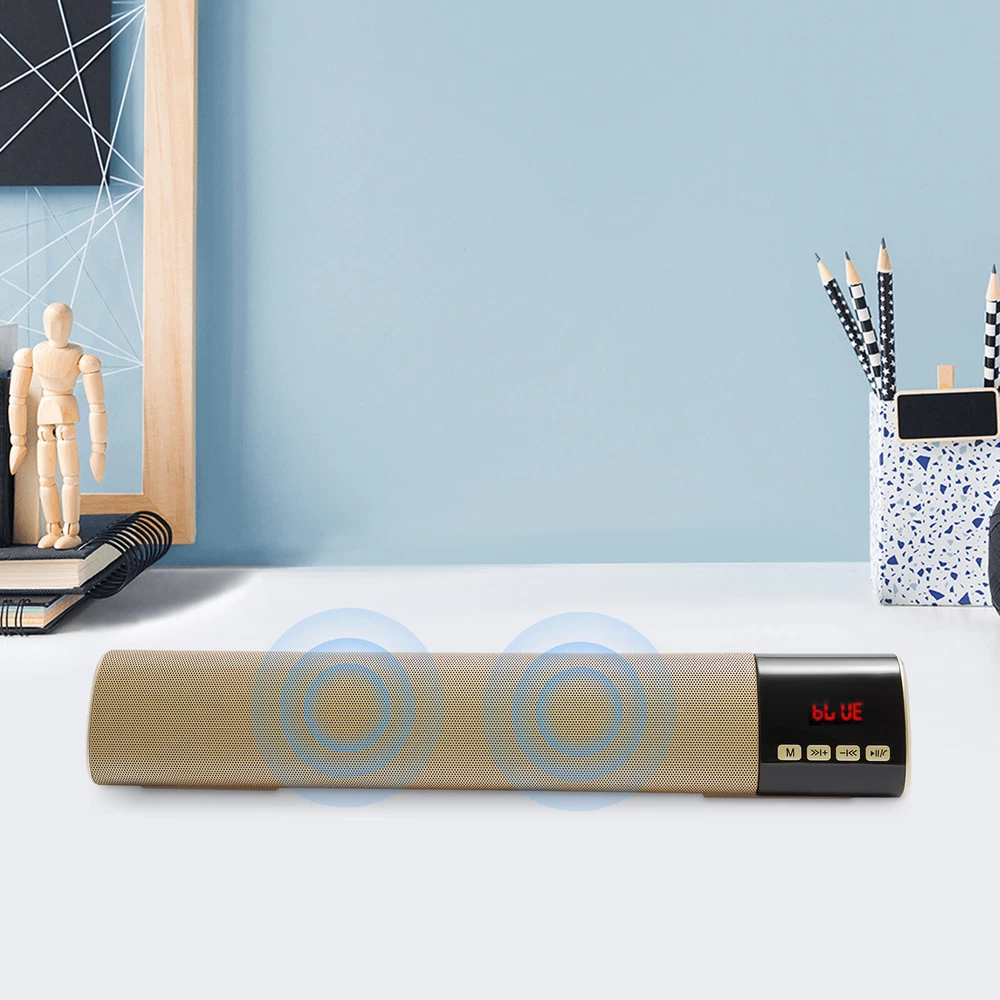 Rechargeable Wireless Bluetooth Speaker Super Bass Loud speaker w/ FM/USB/TF NEW Rechargeable Wireless Bluetooth Speaker Super Bass Loud speaker w/ FM/USB/TF NEW Product parameters: Speaker size: 55MM*72MM*395mm Weight: 605g Colour: Black Bluetooth chip: Jerry 6926 Speaker: 4R 5W*2 Maximum power output: 5W*2 Interface type: Micro USB Bluetooth frequency: 2.4GHz Type: Bluetooth speaker FM radio: built-in Battery capacity: 1200 mA Signal to noise ratio: â„70db Microphone sensitivity: 42db + 2 FM frequency bandwidth range: 76-108MHz Connection method: Bluetooth connection Bluetooth distance: 10 meters Frequency response range: 76-108MHz Power supply mode: built-in lithium battery Support TF card Features: 1. Bluetooth smart speaker Experience stunning sound quality 2. Simplicity Simple and stylish design, listen to the simple and good sound, compact and simple body, with humanized non-slip foot pad design, it matches well with all models of computers, and does not occupy desktop space 3. New Bluetooth 5.0 Link faster 4. Strong compatibility Support various audio devices 3. The sound quality is comparable to HIFI, a new experience 4. Built-in 1200 mAh battery Long battery life 5. Support TF card, U disk playback 6. Built-in high-definition microphone The call is more convenient. When a call comes in after connecting to the communication device, the button can be directly answered and hung up. CVC hardware is used to reduce noise and provide high-definition sound quality 7. Support AUX playback 8. Support one-click answering of hands-free calls 9. Built-in FM radio Listen to your favorite radio stations, favorite music, and familiar radio frequencies at any time, adding more fun to life 10.Has a 4-dimensional design Dual sound unit, dual sound guide holes, forming a stereo speaker, experience stereo surround sound Packing list: charging cable + Bluetooth speaker (black) Brand Unbranded Surface Finish 1 Made of high quality material đ„Featuređ„ đ„High Performanceđ„High Safetyđ„Good Stabilityđ„ Manufacturer Warranty 3 Years â€Highlights†â€Premium Materialâ€Long Service Lifeâ€Creative Design†Warranty 3 Years Country/Region of Manufacture China Features Long Service Life,Exquisite Appearance,High-quality Item location CA /NJ /Austell Type Bluetooth speaker Color Black Bluetooth chip Jerry 6926 Speaker 4R 5W*2 Maximum power output 5W*2 Interface type Micro USB Bluetooth frequency 2.4GHz FM radio built-in Battery Capacity 1200 mA Signal to noise ratio â„70db Microphone sensitivity 42db + 2 FM frequency bandwidth range 76-108MHz Connection method Bluetooth connection Bluetooth distance 10 meters Frequency response range 76-108MHz Power supply mode built-in lithium battery Support Support TF card Model Bluetooth 5.0 Connectivity Bluetooth