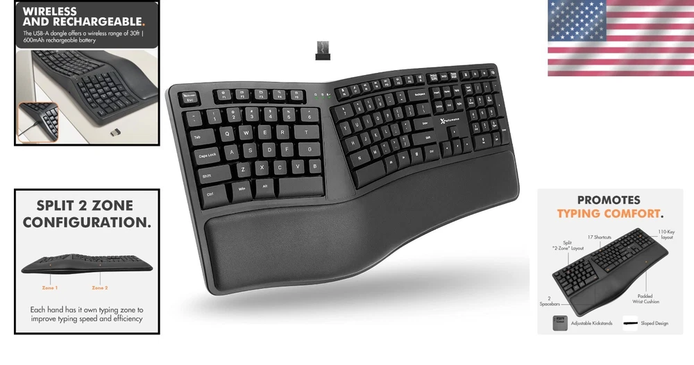 Rechargeable X9 Wireless Ergonomic Keyboard with Split Design & Wrist Support ‹ › ‹ › ‹ › ‹ › ‹ › ‹ › ‹ › ‹ › ‹ › ‹ › ‹ › Rechargeable X9 Wireless Ergonomic Keyboard Key Features: Comfortable, Natural Typing: Say goodbye to awkward typing positions common with traditional keyboards. Our ergonomic design promotes a natural and comfortable typing experience, allowing you to work longer without discomfort. Split Keyboard with Wrist Support: The innovative split 2-zone design features 110 keys with a soft wrist cushion, helping to maintain a relaxed posture and providing optimal wrist support, ensuring your comfort during extended use. Dependable 2.4G Wireless Connectivity: Eliminate cable clutter from your workspace with our plug-and-play wireless keyboard. Enjoy a clean, organized desk with a wireless range of up to 30 feet via the USB-A RF receiver. Extended Battery Life: Equipped with a powerful 600 mAh internal battery, our rechargeable wireless keyboard lasts for months on a single charge, ensuring you can stay productive without constant interruptions. A charging cable is included for your convenience. Why Choose Our Ergonomic Keyboard? Transform your typing experience with the Rechargeable X9 Wireless Ergonomic Keyboard. Engineered for comfort and convenience, it meticulously combines innovative design with excellent functionality. Whether you are working from home, cruising through long documents, or gaming, this keyboard will enhance your productivity while keeping your hands feeling great. Don't compromise on comfort—invest in your well-being with our ergonomic solution and enjoy a more natural typing posture. Elevate your workspace aesthetics and efficiency today; order your Rechargeable X9 Wireless Ergonomic Keyboard now! Shipping Free & Fast Shipping - We offer free shipping to most of the USA with a normal delivery time of 3-7 days. However, due to the current situation, additional delivery time (up to 3 weeks) may be required for some items. Alternative Carriers - We may use alternative carriers (e.g. USPS, FedEx, UPS, etc.) to ensure your package arrives safely and on time. Due to the use of multiple carriers, we are unable to provide a tracking number automatically. Handling Time - Orders are processed and shipped within 1-2 business days of receiving cleared payment. Shipping Restrictions - Shipping to Alaska, Hawaii, Puerto Rico, Guam, and other US territories may incur shipping charges or delivery restrictions. Please contact us before ordering, or your order can be refunded/cancelled. State Restrictions - There may be restrictions based on your state of purchase. For example, certain items may not be shipped to California due to state regulations. Contact for Tracking Updates - If you require tracking updates or have any concerns about the delivery of your order, please feel free to contact us, and we will be happy to assist you. Return Please see our eBay Return Policy. Thank you. Payment We accept all major credit cards, PayPal, and Apple Pay for your convenience. Your payment information is secure and encrypted to ensure a safe and seamless transaction. Please complete your payment within 3 days of purchase to avoid any delays in shipping. Feedback Your feedback is extremely important to us. We strive to provide the best products and customer service possible. If you are satisfied with your purchase, please take a moment to leave us a positive review. If you have any concerns or issues with your order, please contact us before leaving negative feedback. We are committed to resolving any problems and ensuring your satisfaction. Contact Us If you have any questions or concerns, please feel free to reach out to our customer support team. You can contact us through the eBay messaging system. We are available Monday to Friday, 9:00 am to 5:00 pm EST, and we will do our best to respond to your inquiry within 24 hours. Thank you for supporting our small family business! UPC: Not Set Unit Quantity: 2.84 Item Height: Wireless Ergonomic Keyboard Item Length: Wireless Ergonomic Keyboard Item Width: Wireless Ergonomic Keyboard Material: Plastic Connectivity: Wireless,USB-A RF Features: Plug & Play,Split Keyboard with Wrist Rest,Comfortable Typing,2.4G Wireless Connectivity,Extended Battery Life,Rechargeable,Large 600 mAh Battery,Includes Charging Cable Brand: Unbranded Type: Ergonomic Keyboard Language: English Keyboard Layout: QWERTY (Standard) MPN: Not Set Model: Not Set Color: Black Unit Type: lb Country/Region of Manufacture: Not Set Manufacturer Warranty: Not Set