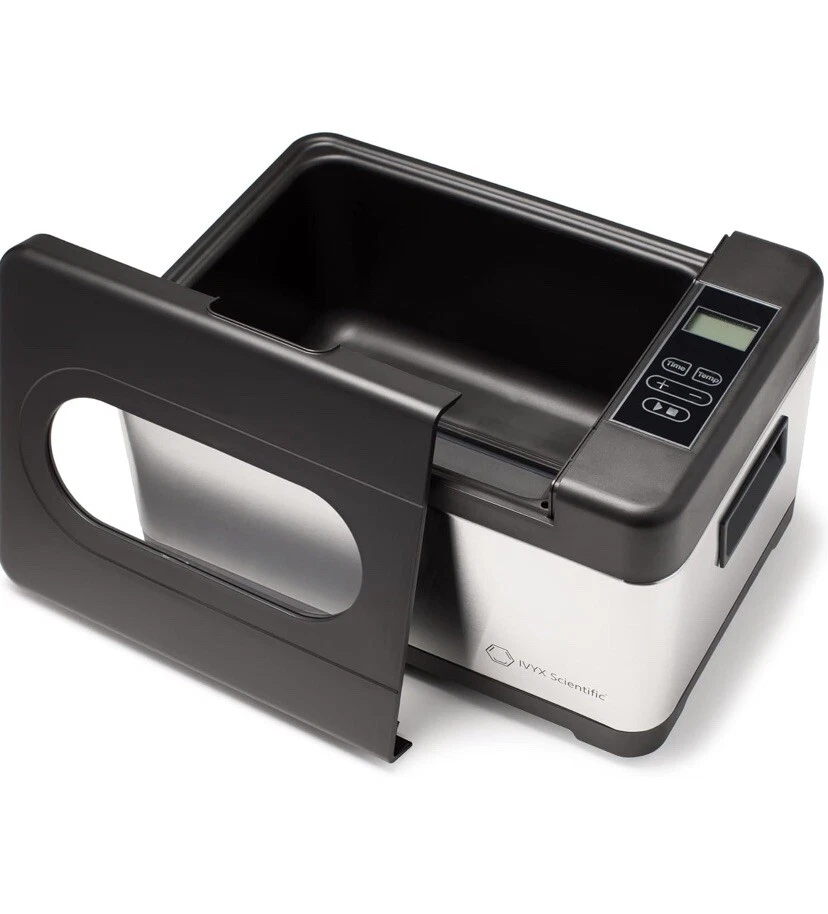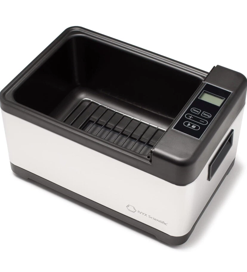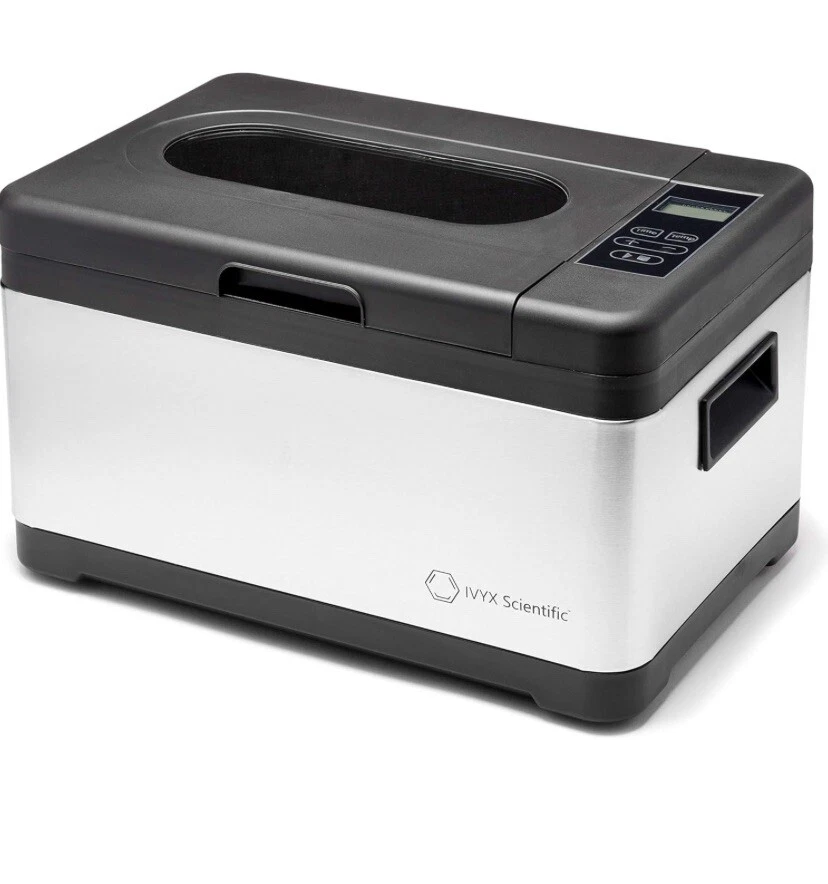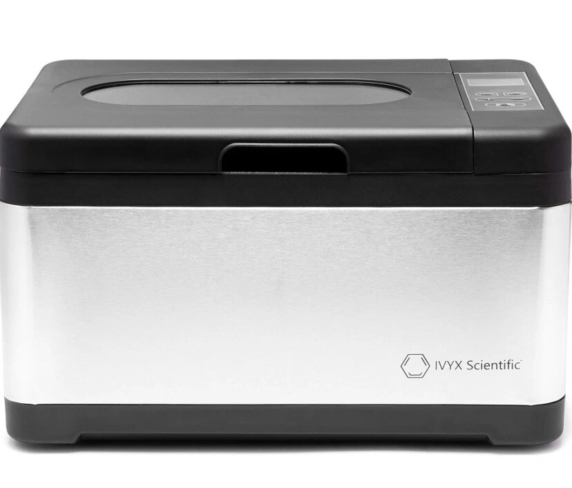 8L Recirculating Water Bath from IVYX Scientific This 8 Liters (2 Gallons) versatile, simple to use laboratory water bath is able to quickly and precisely keep samples and experiments at the correct temperature, from room temperature to 100°C in 0.1°C increments. The built in timer allows continuous operation for up to 24 hours. An internal pump continuously recirculates the water, ensuring a uniform, precise temperature of +/- 0.3°C of the set temperature Water from the vessel flows through a small hole at the bottom of the water bath, where it is pumped internally around and up to the side of the vessel. This continuous mixing of water ensures a uniform, precise temperature throughout the water bath. NOTE: To protect the internal pumping mechanism and tubing against extreme heating, the pump automatically shuts off when the temperature reaches 85°C, stopping the water cycling. Large 8L Capacity The large internal chamber has a volume of 8 Liters (2 Gallons), with dimensions of 11x8.5x5.5 in. Simple controls with a 24hr timer Set the desired temperature and time with simple, easy to use controls. A backlit LCD screen clearly displays the current temperature, time, and pump operation. Stainless Steel Body The exterior is constructed of stainless steel. The inner water vessel is made of tough polypropylene, while the heating plate is made of an aluminium alloy with Teflon coating. Max Volume 8 Liters / 2.11 Gallons Temperature range Room Temperature to 100°C (210°F), in 0.1°C increments Temperature control +/- 0.3°C Temperature Control System ACT (Active Control Thermostat) System, Recirculating Water Cycling Rated Power 800 Watts Timer 0-24 hours External Dimensions 15x10x9 in (with cover) Internal vessel dimensions 11x8.5x5.5 in Display Backlit LCD Screen External Body Material Stainless Steel Water Vessel Material Polypropylene Heating Plate Material Aluminium alloy with Teflon coating Features & details PRECISE HEATING: Recirculating pump cycles the water to keep it within 0.3°C of set temperature POWERFUL: 800 Watts heater quickly heats up the water PROGRAMMABLE: Timer is programmable from 0 to 24 hours EASY TO USE AND READ: Heats up to 100°C in 0.1°C increments. Digital display clearly shows the current temperature NOTE: This water bath can only be run continuously for 24 hours at most for safety reasons. After that time the settings need to be reset.