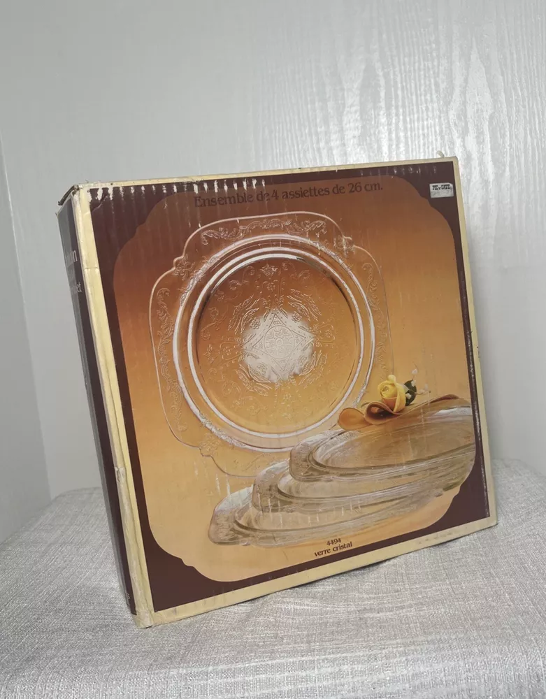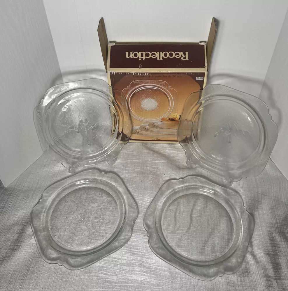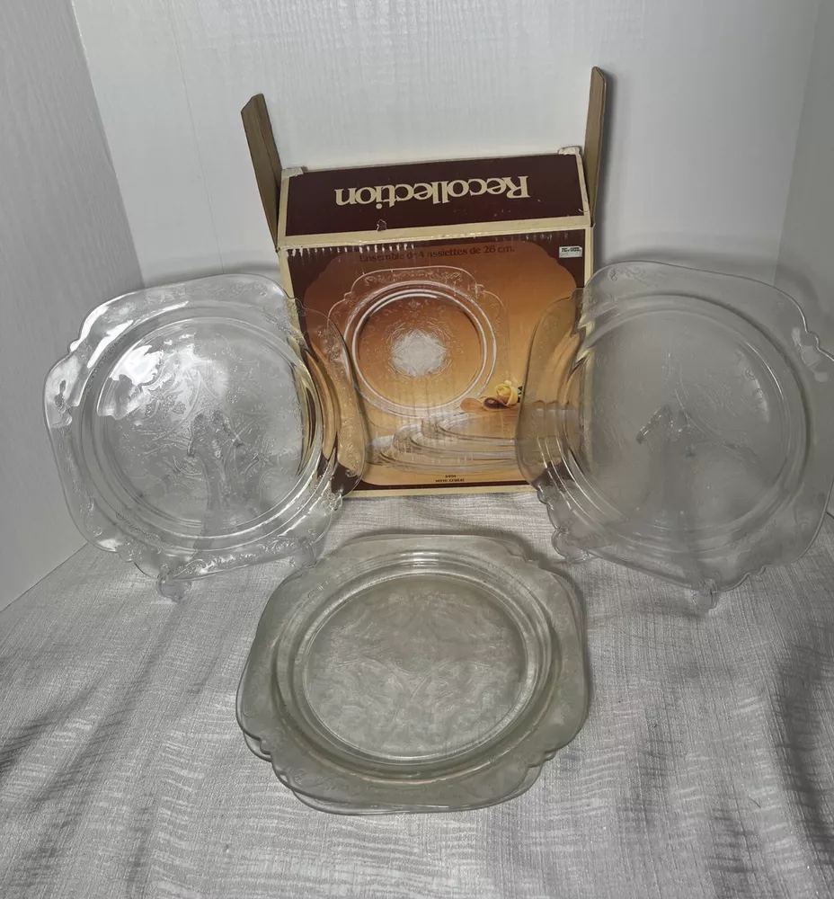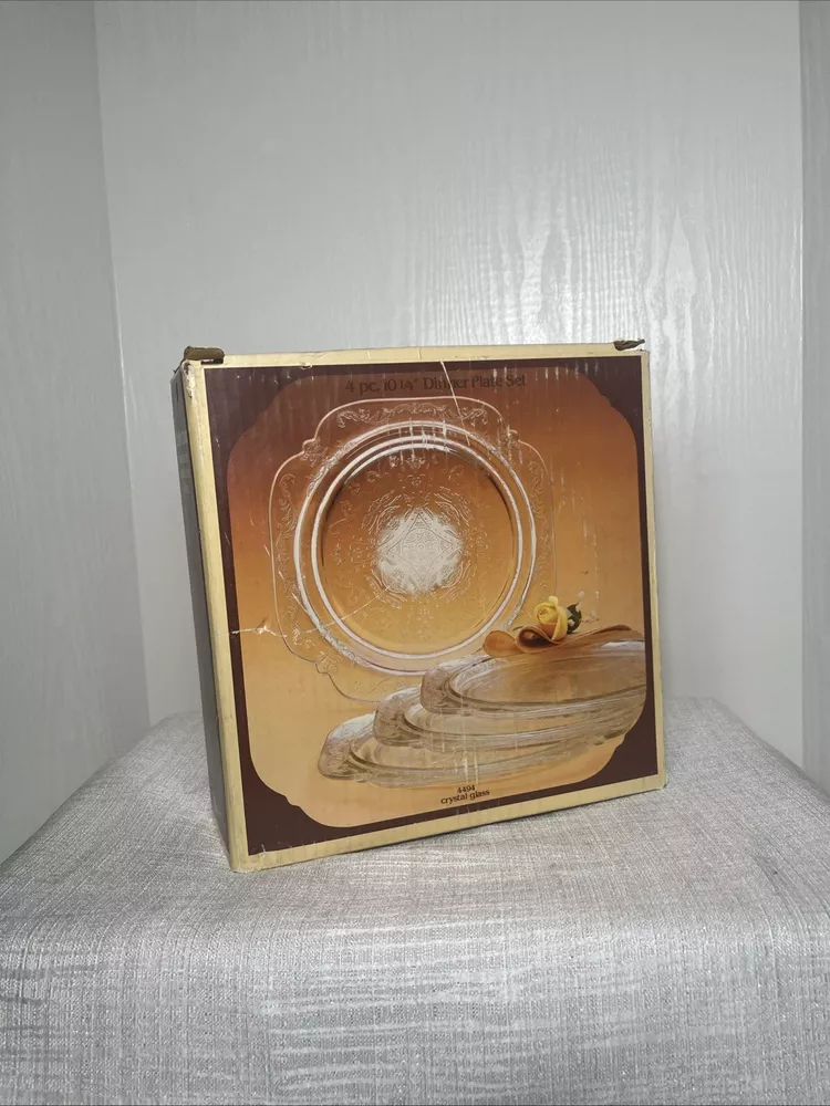 Elevate your dining experience with the Recollection Clear Indiana Glass 4494 4 Piece Dinner Plates Set. Crafted from premium crystal, these square plates boast a timeless design that complements any table setting. Ideal for all occasions, their clarity adds an elegant touch to your meal presentations, making every dinner a special occasion. The set comes complete with four dinner plates, each meticulously fashioned to ensure a balance of style and functionality. Vintage yet versatile, these plates are a testament to Indiana Glass's renowned craftsmanship, suitable for both casual and formal events. The included original box enhances the visual appeal and serves as a protective storage option when not in use. Preowned. Packed in original box, with original price tag. 4 dinner plates. Excellent condition. Shipping USPS Ground Advantage Shopwith confidence***Returns accepted within 30 days! Returned items must bereturned in original condition received, buyer pays return shipping cost. Takea peek at SweetShine's other listings. Thanks for viewing.