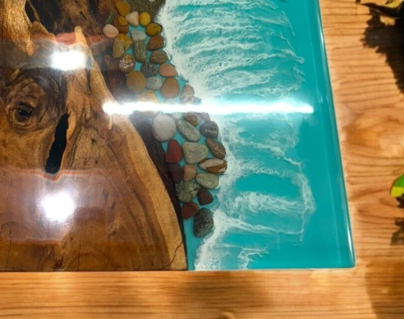 Rectangle Epoxy Dining Table Ocean Wave River Kitchen Countertop Furniture Decor