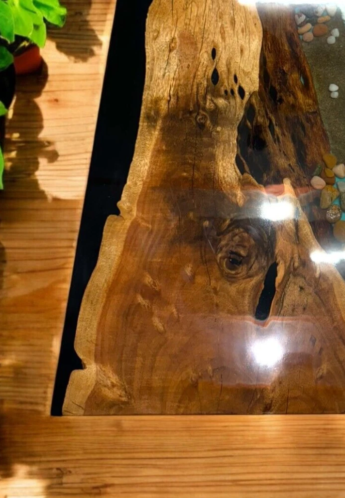 Table Top Size: 36"x24" Inches Our epoxy tables are custom-made, and we strive to use the same type of wood as depicted in our advertising pictures. However, it is not always possible to find an exact match, which may result in slight variations in the epoxy color and wood grain pattern. It's important to keep in mind that the table you receive may not be an exact replica of the advertising picture. We ensure that our clients are informed of every step of the process, from the selection of the wood to the final finish of the table. We keep our clients up-to-date throughout the process to ensure transparency and avoid any misunderstandings. Additionally, our price includes air delivery right to your doorstep via DHL/Fedex/UPS and insurance protection. Please note that you may be responsible for paying any applicable tax and duty on delivery. If you have any concerns or doubts, we highly recommend addressing them before making a purchase. Clearing any doubts beforehand will help avoid any issues and ensure a smooth buying process. It's important to note that any accessories depicted in the advertising images, such as knives, chairs, or lighting, are not included with the product and are only used for photography purposes. Additionally, please keep in mind that the price of the product does not include any type of legs. If you would like legs included, we can provide them for an additional cost. We recommend addressing any questions or concerns before making a purchase to avoid any misunderstandings.