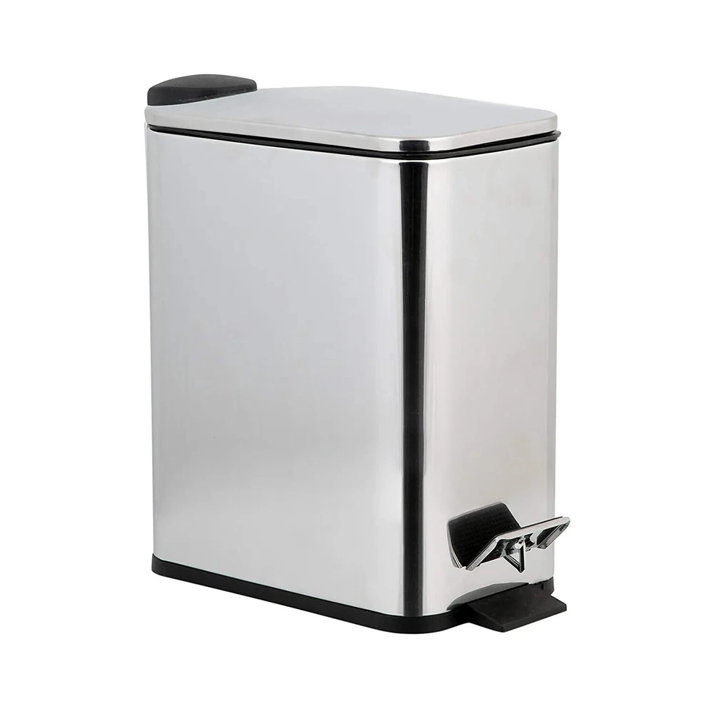 Spruce up your home, office, or dorm with the Slim Rectangular 5 Liter Pedal Trash Bin. The 5 Liter trash can is perfect for small spaces with its slim construction so it can be tucked away out of sight. Its modern look fits with any household décor. Designed with a convenient hands-free step pedal for easy opening with soft closing hinges. The lid traps odors and prevents overflowing of garbage. Never worry about the look of trash again with this trash bin to hide the mess. A must have for every room to keep your home clean! DIMESNIONS: 11" x 5.5" x 11.4" 5L CAPACITY: The wastebasket has a 5 Liter capacity. It is small enough for any room and can be tucked away out of sight. STEP PEDAL: Designed with a step pedal for easy hands-free opening. Just step on the foot pedal and the lid opens. Helps prevent the spread of dirt. SOFT CLOSE LID: The soft close lid makes it so that the lid does not close too fast. The lid traps odors and prevents the overflowing of garbage. SLIM DESIGN: The sleek, slim contemporary design is functional and decorative. It is great for your bathroom, office, or dorm.