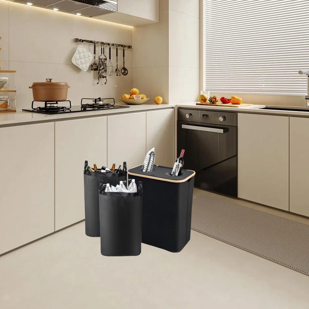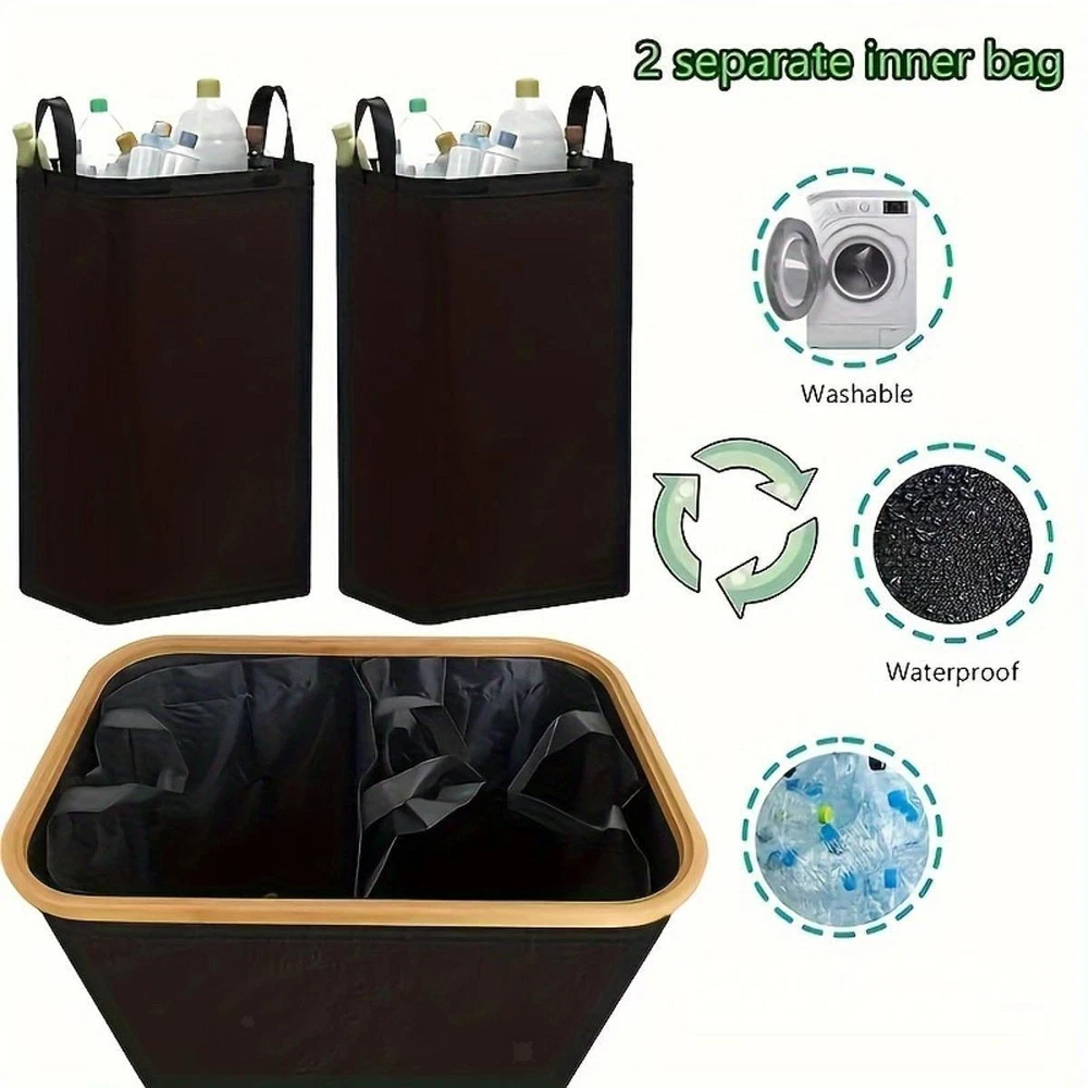 Store Home | Home & Garden | Musical Istruments & Gear | Toys & Hobbies | Sporting Goods | Health & Beauty | Consumer Electronics Recycling Bin Folding Garbage Container Waste Storage Organizer Recycling Description: 【Easy to Clean】: Recycling Bin is easy to wipe clean and resists spills and dirt. Its waterproof feature ensures that the trash can always stays in shape and visually appealing 【Material】: Made of bamboo and stainless steel materials, Trash Can combines strength and , making it a great addition to any kitchen or clutter space 【Dimensions】: Recycling Waste Bin measures 57 x 37.5 x 67 cm, and the inner bag measures 73 x 58 cm, providing ample space to efficiently sort recyclables 【Packaging】: Each purchase includes a foldable Waste Trash Sorting Organizer with lid and two bags, ensuring you have everything you need for immediate use 【Double Compartment Versatile Design】: Recycling Organizer Bin's double compartment design makes it easy to separate different types of recyclables or waste, enhancing kitchen organization and sustainability Size Chart: garbage can:57cmx37.5cmx67cm/22.44inchx14.76inchx26.38inch bag :73cmx58cm/28.74inchx22.83inch Package Includes: 1 Trash Can 2 Reusable Inner Bags Note: Please allow slightly errors due to manual measurement and different monitors. Payment Shipping Returns If you are bidding or ordering more than one item, the items will be combined into one order automatically thus you can pay altogether. If you want not to combine, please buy one and immediately pay one separately. Please pay what you win in 7 days. Unpaid Dispute will be automatically open if payment is not received after 7 days. If you pay the bill after received unpaid dispute, please email us to close the unpaid dispute. Because the unpaid dispute will not be closed automatically, and we may ignore it. The buyer is responsible for any applicable import duties and local taxes. Please verify with your customs before making your purchase. Please verify your address during checkout. We are not responsible for any wrong or undeliverable addresses. We are committed to give you the best customer service possible. If for any reason you are unsatisfied with a purchase, please contact us and we'll assist you with a prompt solution. Please let us work on the issues. We'd like to settle any problem in a friendly manner. Please do not open a case on eBay or PayPal, or leave any negative or neutral feedbacks directly! We always reply to messages within 2 business days (off-duty at weekend). Due to the difference of time zone between Hong Kong and your location, sometimes the answer will be delayed. If you do not get a response from us after 2 business days, please check your junk or spam mailbox. Unsatisfied product can be returned within 30 days from the delivery date . We can offer a full refund or exchange, but we are not responsible for return shipping cost. Please contact us to get a RMA number before sending out your return. Feedback: 1. Since your feedback is very important to our business's development, we sincerely invite you to leave positive feedback with four 5-Detailed Selling Rating (DSR) to us basing on your satisfaction with our commodity and service. It's just take you 1 minute. 2. Unfortunately, If you are planning to give us a neutral/negative feedback because of your bad buying experience with us, please contact us at any time so as to clear up your discontent and resolve the problem. Featured Products People always bought together with