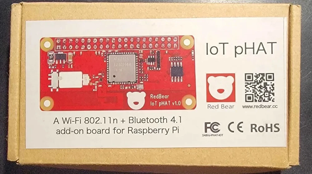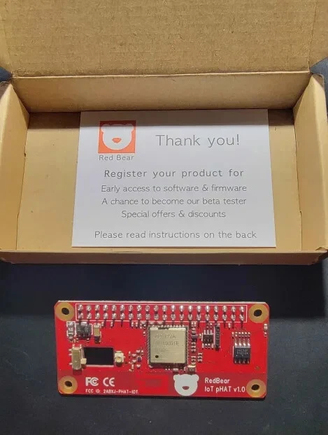 Red Bear IoT pHAT - WiFi 802.11n + Bluetooth 4.1 Add-on Board for Raspberry Pi (IoT pHAT v1.0) Boost the wireless connectivity of your Raspberry Pi with the Red Bear IoT pHAT v1.0, an add-on board designed to provide both WiFi 802.11n and Bluetooth 4.1 capabilities. Ideal for makers, hobbyists, and developers working on Internet of Things (IoT) projects, this board offers easy integration and enhanced wireless performance. Key Features: Dual Connectivity: Supports both WiFi 802.11n and Bluetooth 4.1, perfect for IoT and wireless communication projects. Easy Integration: Designed specifically for Raspberry Pi, ensuring seamless compatibility. Compact Design: The small form factor makes it ideal for projects where space is a premium. High Performance: Reliable and fast wireless connection for data transmission and communication. FCC & RoHS Certified: Meets safety and environmental standards for reliable usage. Specifications: Model: IoT pHAT v1.0 Wireless Standard: WiFi 802.11n (2.4 GHz), Bluetooth 4.1 Compatibility: Raspberry Pi models with 40-pin GPIO headers Dimensions: Approx. 65mm x 30mm (2.56" x 1.18") Certifications: FCC, CE, RoHS What's in the Box? 1 x Red Bear IoT pHAT Board (v1.0) Ships in original protective packaging. Condition: Brand new, never used, in original packaging. Why Choose the Red Bear IoT pHAT? The IoT pHAT by Red Bear is an essential accessory for any Raspberry Pi enthusiast looking to add reliable wireless connectivity to their projects. Whether you're working on a DIY smart home system, a remote sensor network, or any other IoT project, the IoT pHAT provides the connectivity you need with ease. Feel free to contact us if you have any questions or need more information!