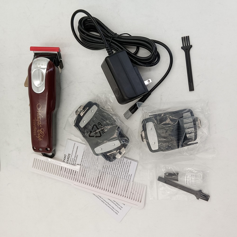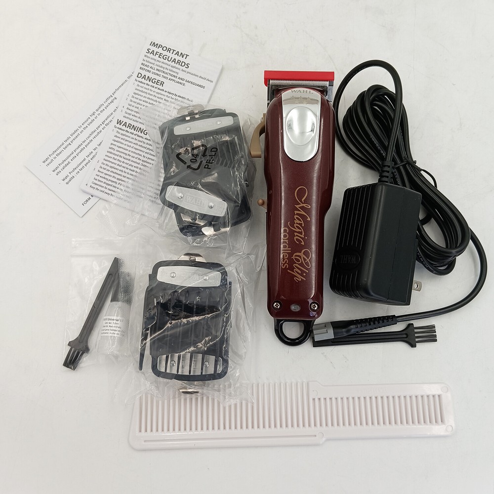 Product Description Red Clip Clipper Professional 5 Star Cord Cordless Magic #8148 Fade 100-240VAC Professional 5 Star Magic Clip Cord Cordless Hair Clipper Lithium-Ion Cord/Cordless Clipper has a 90+ minute run time, unique stagger-tooth blade for precision fades and blends, 2161 blade fits all standard Wahl attachment combs. Lightweight with sleek ergonomic design. Equipped with taper lever for easy fading and blending. Features: Lithium-Ion Cord/Cordless Clipper 90+ minute run time Unique stagger-tooth blade for precision fades and blends (blade only available for Cordless Magic Clip) 2161 blade fits all standard Wahl attachment combs Lightweight with sleek ergonomic design Equipped with taper lever for easy fading and blending Specifications: Cord Length: Corded>Clipper>8ft Unit length (lb): 6.25" Unit Weight (lb): 10.2 oz. Batteries Included: No Cord Length: Cord/ Cordless Transformer Motor Type: Rotary Magento Specification Accessories: 8 attachment combs (1/16" - 1"), oil, cleaning brush, styling comb, instructions, red blade guard & recharging transformer Voltage & Hertz: 120-60Hz Battery Type: Lithium-Ion MPN: 8148 Color: red Return policy About us Contact us Shipping If you need return, let us know the detailed problem and send us some pictures for confirmation. Then get an address for return or refund. 1.Customers may return an item for refund or exchange within 30 days after the item is received. Items must be returned in their original shipping and item packaging and should not be used. 2.We only accept our own parts without any broken. 3.Customers are responsible to the shipping back cost if you buy our item by mistake or change your mind. 4.Refund will only send once we receive the part from you without any problem.thanks 5.If a defective received (seldom happened), we will refund you or ship a replacement to you according to our inventory. (Not included the postage). 1. We value our customers tremendously. We are learning and improving our service better and better, and your satisfaction is the first thing that we pursue. 2. If any problem occurs, please contact with us at the first time. 3. Then we will try our best to solve the problem and make you pleased 4. And if you are pleased with this transaction, please don’t hesitate to leave a POSITIVE FEEDBACK and FIVE STARS on all of the Detail Seller Ratings. We will do the same for you. If have any problem, Please don't give negative feedback, Please contact us by message, we will do our best to service you .Thanks very much and have a good day! 1. Your order will be usually shipped out on the same day or the next day when you paid for it. 2. Shipping from the USA. 3. Handling time: 2 business day and 3 business day on weekend (Orders are not processed on holidays).Item is shipped to ebay address. Please leaving correct address can minimize delay. Return policy If you need return, let us know the detailed problem and send us some pictures for confirmation. Then get an address for return or refund. 1.Customers may return an item for refund or exchange within 30 days after the item is received. Items must be returned in their original shipping and item packaging and should not be used. 2.We only accept our own parts without any broken. 3.Customers are responsible to the shipping back cost if you buy our item by mistake or change your mind. 4.Refund will only send once we receive the part from you without any problem.thanks 5.If a defective received (seldom happened), we will refund you or ship a replacement to you according to our inventory. (Not included the postage). About us 1. We value our customers tremendously. We are learning and improving our service better and better, and your satisfaction is the first thing that we pursue. 2. If any problem occurs, please contact with us at the first time. 3. Then we will try our best to solve the problem and make you pleased 4. And if you are pleased with this transaction, please don’t hesitate to leave a POSITIVE FEEDBACK and FIVE STARS on all of the Detail Seller Ratings. We will do the same for you. Contact us If have any problem, Please don't give negative feedback, Please contact us by message, we will do our best to service you .Thanks very much and have a good day! Shipping 1. Your order will be usually shipped out on the same day or the next day when you paid for it. 2. Shipping from the USA. 3. Handling time: 2 business day and 3 business day on weekend (Orders are not processed on holidays).Item is shipped to ebay address. Please leaving correct address can minimize delay. powered by