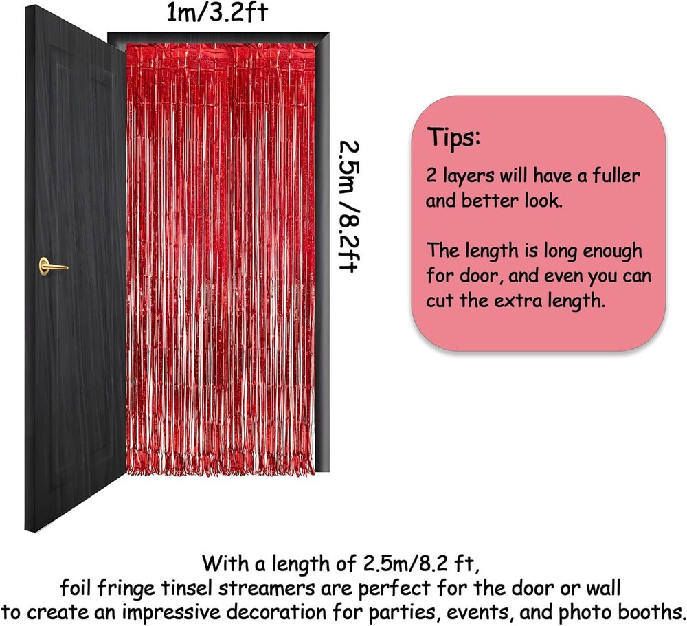 Red Fringe Curtains Party Decorations Backdrop - GREATRIL Foil Tinsel Curtain Occasion Christmas, Prom Item weight 150 Grams Size One Size Colour Red Brand GREATRIL Features Vegas party decorations. Manchester united birthday decorations. Casino party decorations. Notes: You can match other decorations, such as red foil fringe curtains with red balloons or pink balloons, rose red banners, etc. I believe this combination will definitely create a very beautiful party backdrop. Thickness 0.4mm: GREATRIL Foil fringe curtains are thicker and heavier, which means they are less likely to wrinkle or crease, making them durable and long-lasting. Material: The GREATRIL red foil fringe curtain is made of PET foil, which is thin and soft. This red foil fringe curtain party decoration can be kept for a long time and can be reused. The red foil fringed curtain streamer has red sequins on it that won't come off easily. You can throw a red-themed party, wear an elegant and sexy red evening dress, and everyone's eyes will be drawn to you and will be addicted to you against the backdrop of this dazzling red foil fringe curtain party decoration. Easy to use: This red foil fringe curtain is easy to use and very sturdy, it has double-sided adhesive tape on the back, it is not easy to deteriorate, when you need to use, just tear off the tape and stick it directly to the door or wall, this tape will not causes any damage to doors or walls, you can use it with confidence, of course you can also use your own tape or clips to reinforce it if you feel it won't stick. Wide application: This red foil curtain streamer foil Curtain is perfect for Birthdays, Stranger theme party, Christmas, valentines day, bachelorette party, new years eve, party photo backdrop, photo booth, baby party, prom, cocktail, graduation party, Christmas party, wedding party, ceremony, stage background, disco, red theme party, etc. Sparkle and bling will definitely create a Shiny nice atmosphere for your party. GREATRIL Brand 8.2ft x 3.2ft red foil fringe curtains 2-packs, The red tinsel curtain can make your party more gorgeous, the bright red will make everyone's eyes inseparable from this red foil fringe curtain party decoration, everyone will be addicted to it. Our Business 100% Customer Satisfaction We go above and beyond to ensure you receive the best level of service. Returns We want you to be happy with your purchase, however in the rare occasion that you are not, please let us know and we will contact you to arrange either a collection or a refund. Please CONTACT US before leaving any negative feedback and we will promptly sort out any issue with your order. 6219613