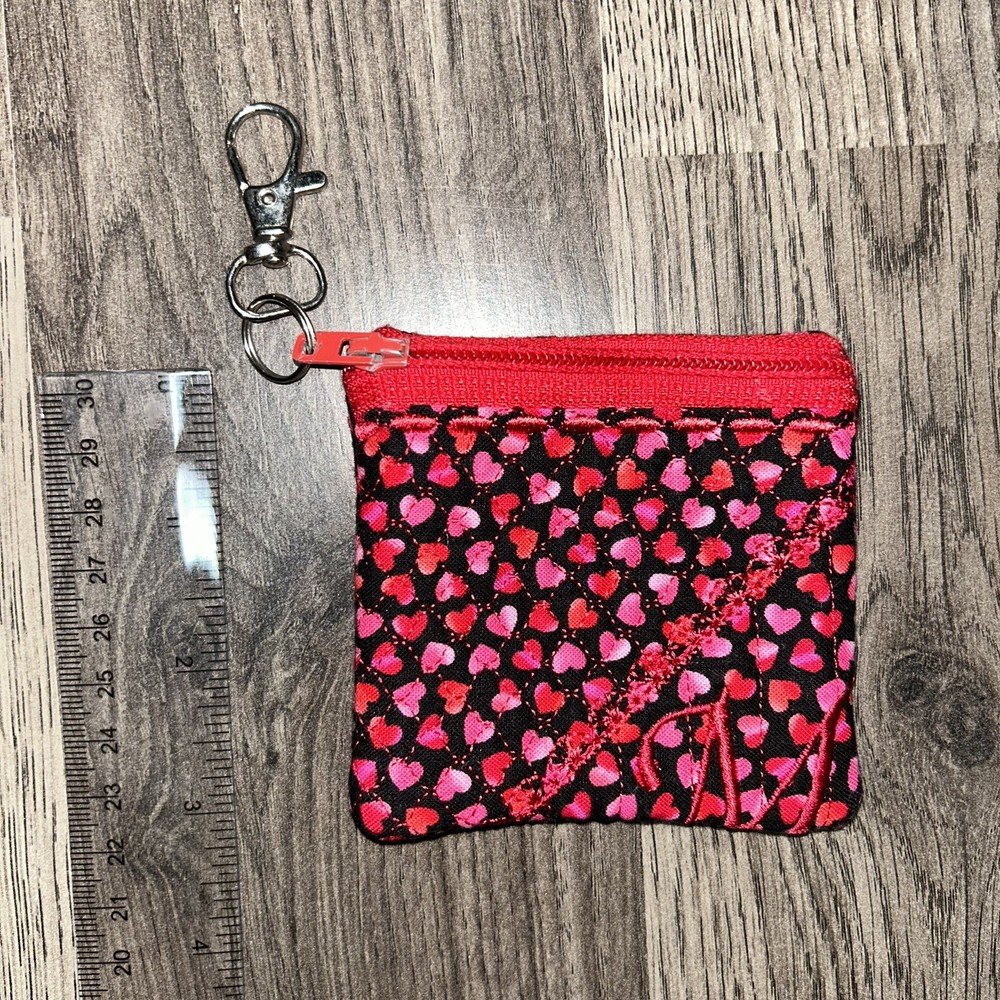 This personalized coin purse holder is the perfect accessory for any woman looking to add a pop of color to her outfit. The bright red color and heart design make it a stylish choice for anyone who loves to stand out. Measuring at one size, this pouch wallet is perfect for carrying around your coins and cash. The letter M adds a personalized touch to the purse, making it a great gift for yourself or a loved one. While it has been previously owned, this purse is in great condition and is ready to be used for any occasion. Don't miss out on this unique and fashionable accessory! (2058A)