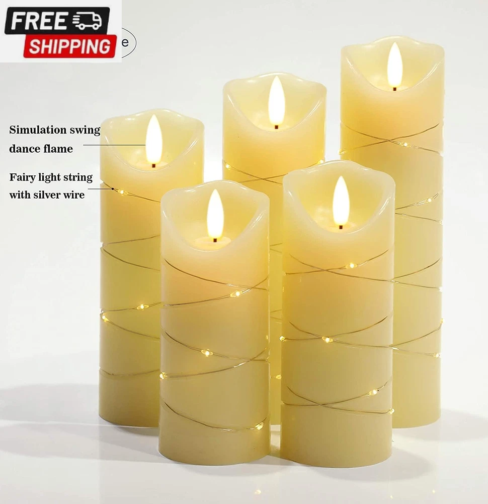 Red LED Flameless Candle with Embedded Star String, 3+4-Piece Set of LED Candles, with 11 Button Remote Control, 24-Hour Timer Function, Flashing Flame, Real Wax, Battery Powered. (Red) ✔New embedded starlight string technology: each candle is wrapped in a silver filament lamp. These light strings consist of 12 to 16 LED fairy lights to provide small, bright dots and a unique and charming appearance. ✔ Realistic flame simulation technology: dancing flames, they will flicker and dance like traditional flame candles. The LED emits light and can be used safely around children and pets. LED candles will not really catch fire, and there is no need to worry about fire-related accidents. Each candle is powered by 2 AA batteries (not included) (requires advanced batteries) ✔10-key remote control: Press the NO button twice to independently control the starlight string. After setting the timer, light the candles at the same time every day for 2 hours/4 hours/6 hours/8 hours (with dual remote controllers) ✔ Real wax (ivory color): Compared with plastic candles, pure wax can produce a softer and more natural luster. These ivory candles are 5 inches, 6 inches, 7 inches, 8 inches, and 9 inches (2.2 inches in diameter), and each set has 5 stepped cylindrical candles. ✔ First choice for modern decoration: these decorative mobile wick candles can be widely used for birthdays, Christmas, home decorations, bars, hotels, parties, holidays, weddings or other occasions. The setting atmosphere of flameless dancing flame: DANIP 5-piece LED embedded light string candle set defines the atmosphere of any room with soft LED lights, flame simulation technology, they will flash and dance like traditional flame candles, but there is no dripping wax, smoke or soot. Add atmosphere and enjoy new conveniences. Embedded light string technology: Each candle is surrounded by bright and delicate light. Wrapped in a silver-finished light string, this is a unique aesthetic effect that combines the appearance of a fairy lamp with the classic beauty of a real flame candle, showing a classic and noble atmosphere. Powerful 10-key remote control: Press the NO button twice to independently control the starlight string. After setting the timer, light the candle at the same time every day, the duration is 2 hours / 4 hours / 6 hours / 8 hours feature: Dancing flames Built-in light string Real wax, bring soft and natural luster Five-tiered pillar candle Each candle requires 2 "AA" batteries (not included) Package Contents: 2 remote control A copy of the manual One 2.2x 5 inch pillar candle One 2.2x 6 inch pillar candle One 2.2 x 7 inch column candle One 2.2 x 8 inch column candle One 2.2 x 9 inch column candle note: eusable battery power, you can reuse them again and again, when you think the starlight and flame light is not bright enough, please replace the new battery. The effect is also excellent. Five-column candle is packed with a protective film, which can protect the candle from dust and make the candle look more noble and bright. When you are really inconvenient to use, you can tear the packaging film without affecting the appearance and effect of the product. Shipping Fast shipping is very important for us. Our standard US shipping service is FREE. Your order will be shipped within 2-3 business days upon full payment received. Your order will be delivered within 2-3 business days after the handling time. We only ship to the confirmed PayPal address. We reserve the right to cancel any order for any reason at any time. We are not responsible for undeliverable addresses. Returns and payment We offer a 30 days return policy from checkout winning date. We allow only PayPal as payment method FeedBack Your feedback very important to us, after you get your package and you are satisfied with our service please leave us positive feedback If you have any problem with your order / any questions please before leave any type of feedback For any questions, using eBay contact system Please visit our eBay store to check out other items for sale! Thank you for shopping at our store.