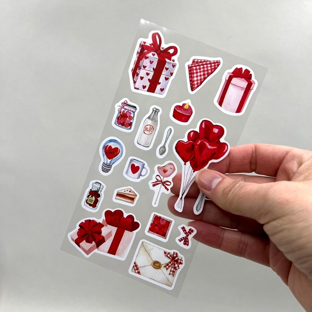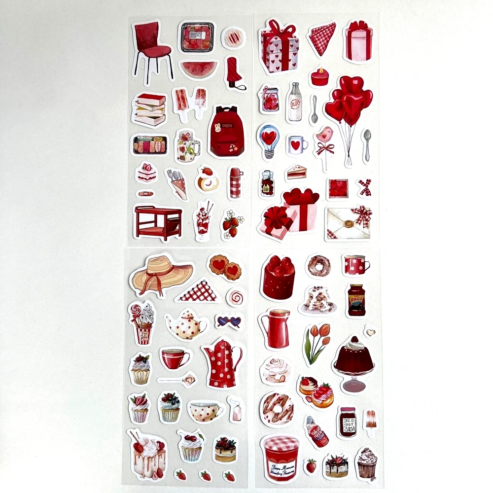 4 sheets. Red hued love, heart, desserts. Romantic Valentine's picnic perhaps? I have more stickers, washi tape and paper for sale. I do combine shipping. Please put all the items you want to purchase in ONE cart and then pay. I will refund you the difference in shipping after shipping label is printed. Let me know if you have any questions through eBay messaging. Thank you for stopping by!