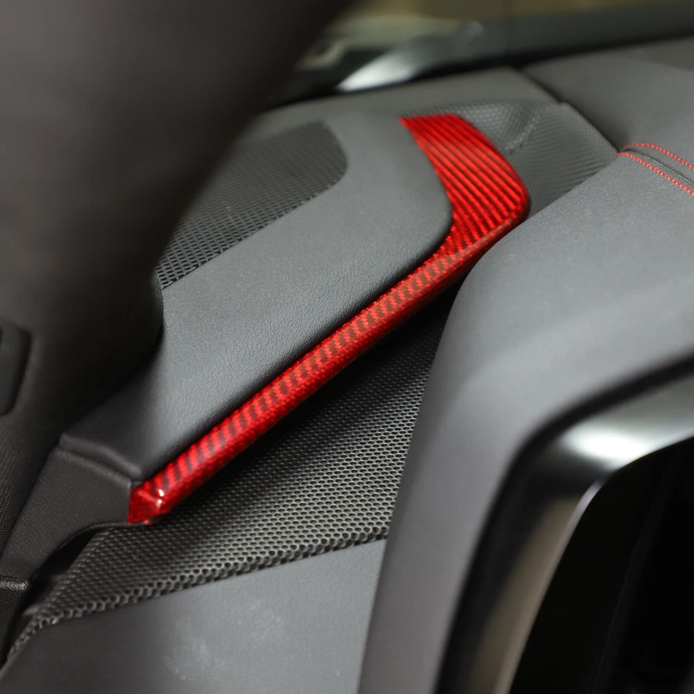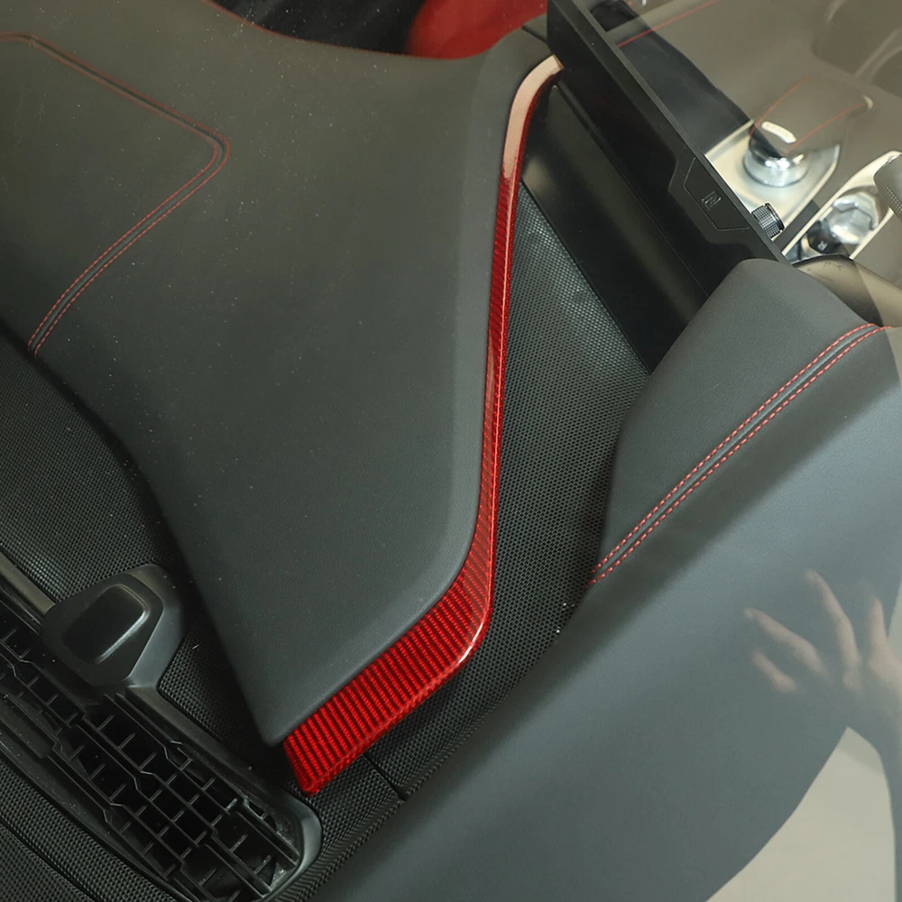 This Red Real Carbon Dashboard Panel L-Shaped Trim Sticker is a game-changer for my Corvette C8! The genuine carbon fiber looks and feels premium, adding a sleek, sporty touch to the interior. The red color pops beautifully, and the fit is perfect—no gaps or misalignment. Installation was a breeze with the included adhesive, and it covers minor scratches flawlessly. The surface is smooth, durable, and resists fingerprints. A must-have upgrade for any C8 owner looking to elevate their cabin’s style without breaking the bank. Highly recommend!