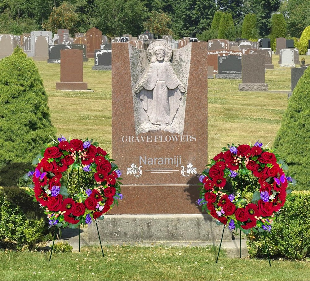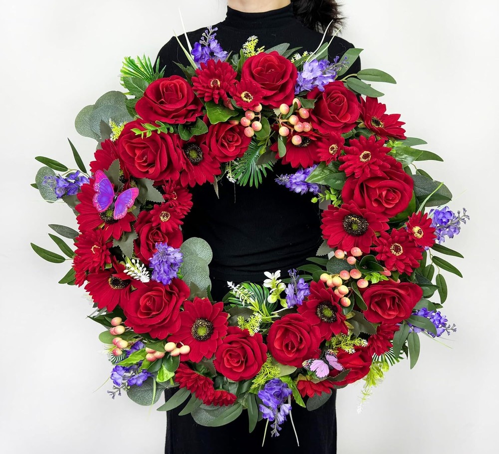 Cemetery Wreath for Grave, Red Roses Memorial Wreath with 30 Inch Easeal Stand, Fade-Resistant Item Description About this item 🌺 Ready-to-Use Convenience This complete 24-inch cemetery wreath arrives pre-assembled on a sturdy 30-inch easel - simply unpack and display. Perfect for busy families seeking beautiful grave decorations without assembly hassles 🌺 Vibrant Everlasting Beauty Crafted with red velvet rose lavender gerbera sunflower and other flowers, our weather-resistant cemetery wreath for grave sites maintains its vivid colors year-round. No wilting petals, falling leaves, or messy cleanup - just perpetual springtime elegance 🌺 Dual-Purpose Memorial Decor Honor loved ones with this versatile grave wreath designed for both cemetery use and home tributes. The weighted easel base works equally well on front porches, walls, or windows, bringing comforting spring symbolism to any sacred space 🌺 All-Weather Durability Our professional-grade cemetery wreath for grave displays withstands harsh sunlight, rain, and snow. Featuring UV-resistant foliage and rust-proof components, this low-maintenance memorial wreath stays securely intact without rotting or shedding 🌺 Artisan-Crafted Quality Meticulously hand-shaped by floral artists using premium silk blooms and flexible stems. Pro Tip: If leaves obstruct flowers upon arrival, gently reshape the wreath by smoothing wrinkles, repositioning foliage, and securing with a steam iron for a flawless finish › See more product details Payment We accept payment only through PAYPAL Shipping We ship products worldwide through standard express courier service, it will reach within 7 to 10 days to abroad buyers, we ship the product after recieved clear payment and give full information about shipment to the buyer Return We accept product return within 7 to 21 days from delivery date but product should be in original position and not in damaged condition,the return shipping charges will be buyer responsibility