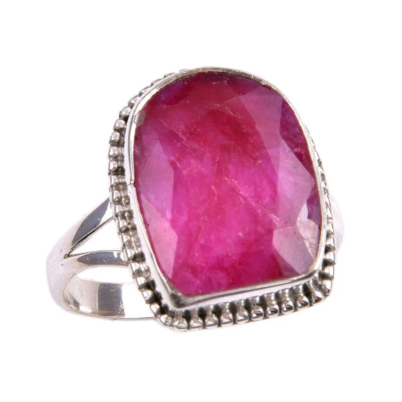 Red Ruby(Simulated) Gemstone Handmade 925 Sterling Silver Gift Ring S.9.5