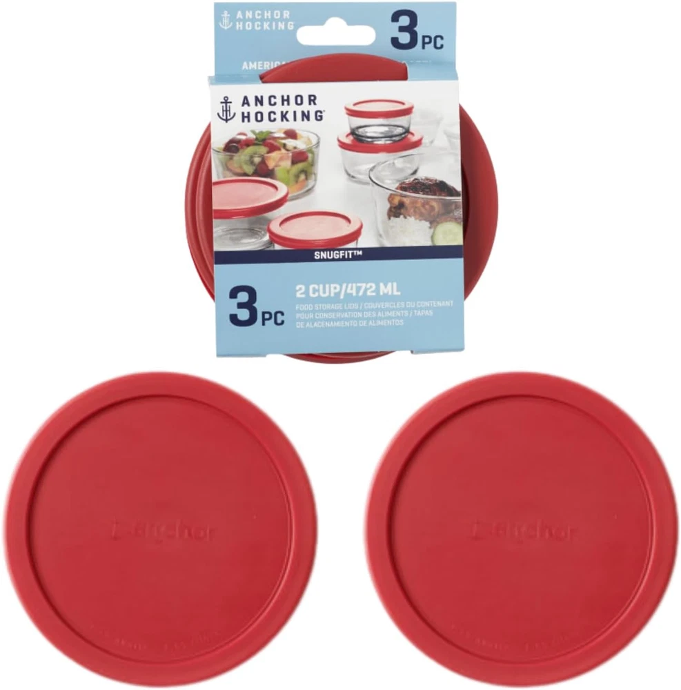 INCLUDES: (3) 2 Cup Replacement Lids, Round DURABILITY: Lids are top rack dishwasher safe BPA FREE: Free of harmful chemicals Since Anchor Hocking began in 1905, we've had a focus on two things: reliability and innovation.Whether your lid was broken in a kitchen mishap or mysteriously vanished to the land of the lost, we’ve got you covered. Replace your lids for your favorite Anchor Hocking dishes without having to replace the entire set!