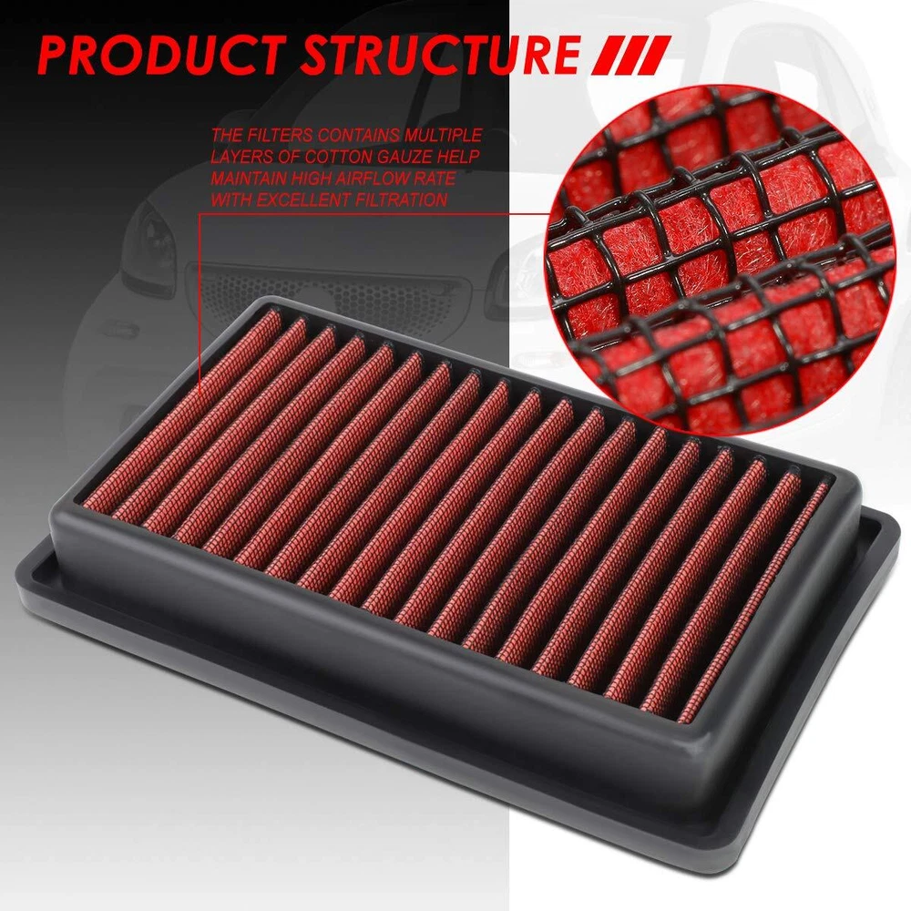 Our reusable Drop in Filter is designed to be the last air filter you buy for the car. It can be cleaned and reused and provides exceptional filtration for your engine. It fits in your OEM air box and replaces the factory filter. Performance is increased as the cotton gauze media filters but does not impede air flow. These filters do not require oil so it does not clog your maf sensor throwing a CEL. Package Included: 1 X Air Filter This product is with: 16-18 Smart Fortwo 0.9L Turbo Notes: OEM Part Number:A2810940000 2810940000 Parkslink Number:C22033 WA10517 ▶️ Designed to Boost Horsepower and Rate of Acceleration ▶️ Can be Cleaned and Used Again; High Air Flow with Exceptional Filtration ▶️ Lasts up to 50,000 Miles Before Ceaning is Required Depending on Driving Conditions ▶️ Works with Original Equipment Manufacturer Vehicle Electronics ▶️ Will NOT Void Vehicle ; Does NOT Require Filter to be Re-Oiled